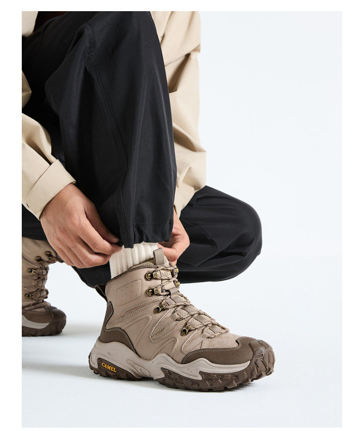 Мужские высокие кеды Camel, новинка 2025 года, осень и зима, износостойкие, нескользящие, водонепроницаемые походные туфли, удлиняющие походные туфли на толстой подошве