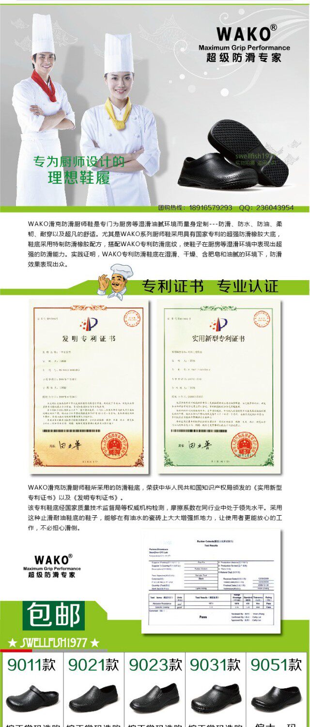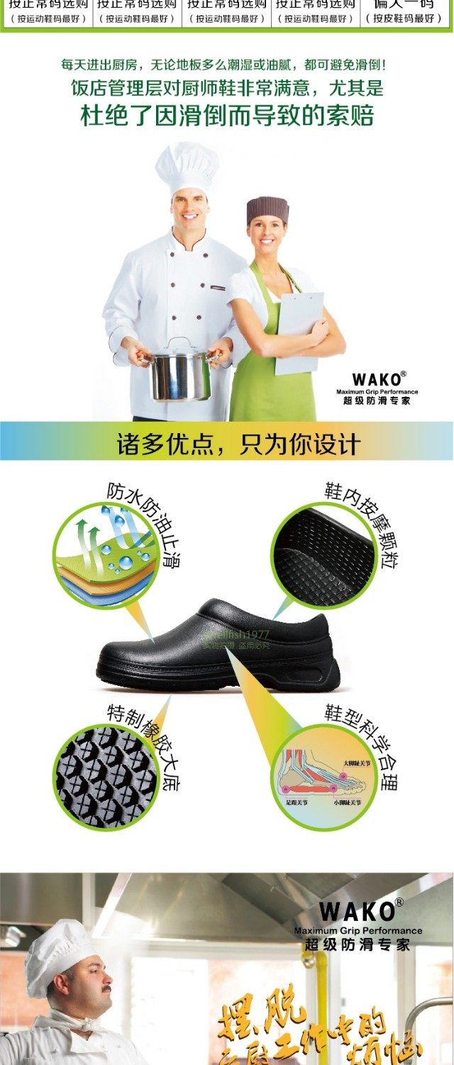 Подлинная слайдер Wako Slider Anti -Slip Chef Shoes 9031 Catering Hotel Work обувь мужская женская кухня специальная обувь бесплатная доставка