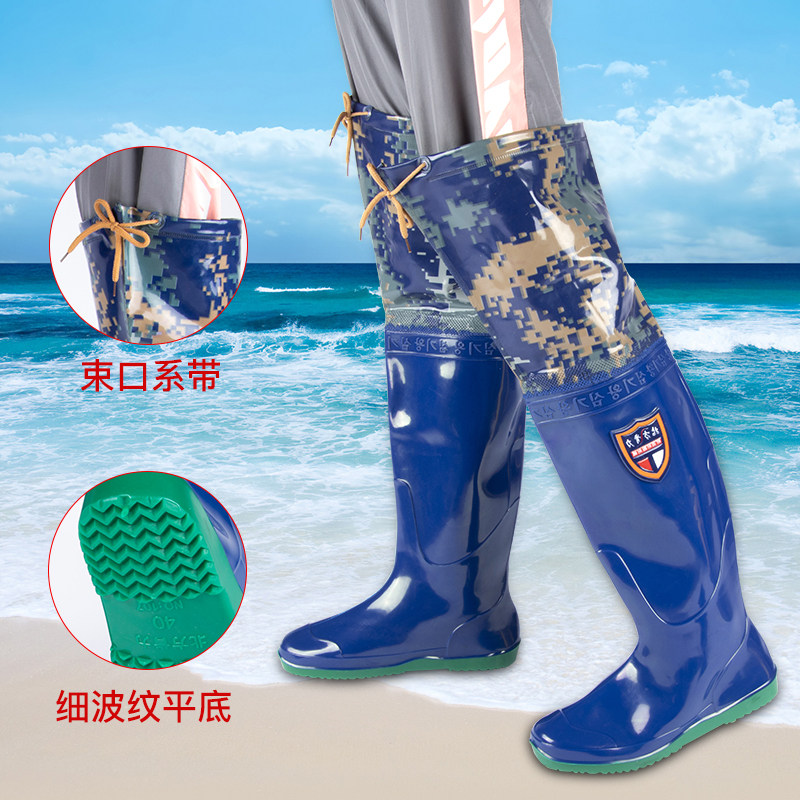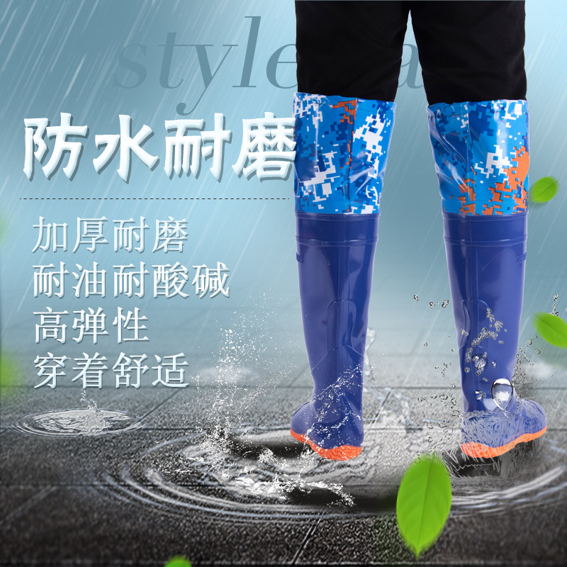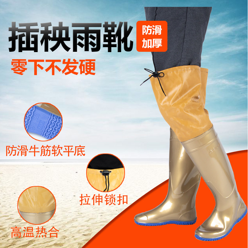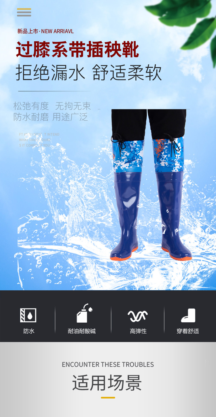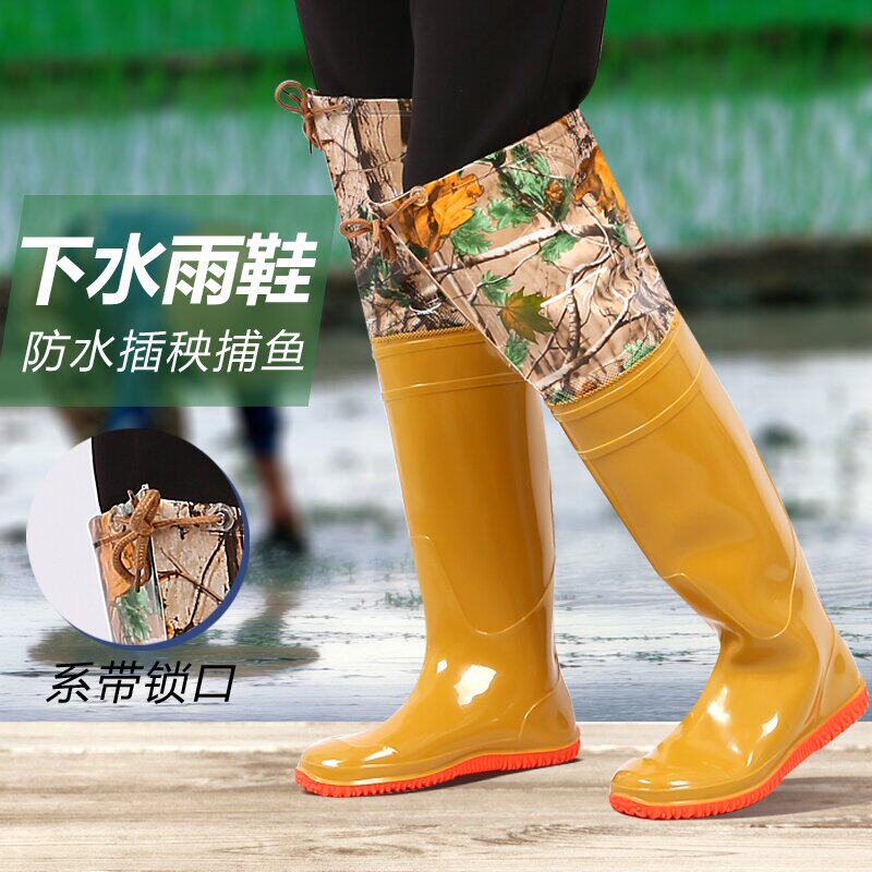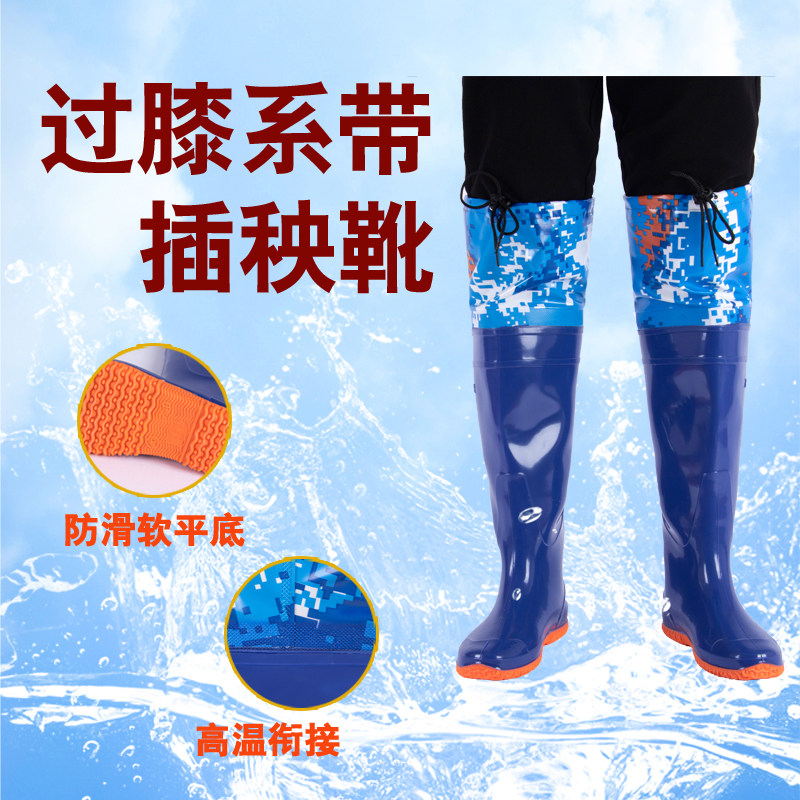 [新款插秧鞋男女超高筒水田靴软平底松紧下水鞋系带过膝牛筋钓鱼靴]