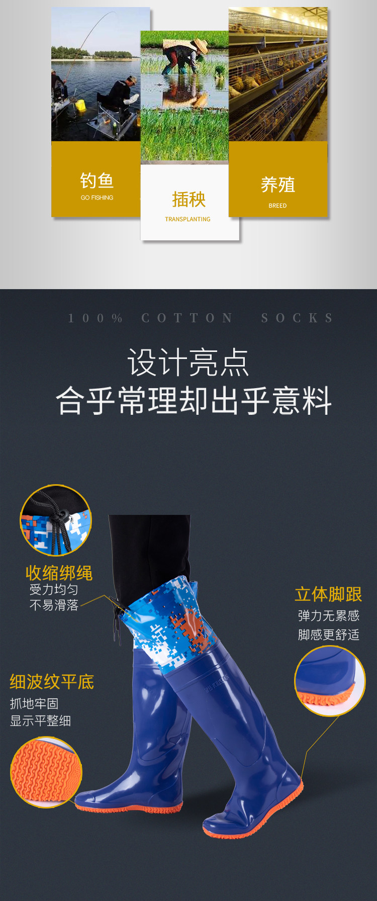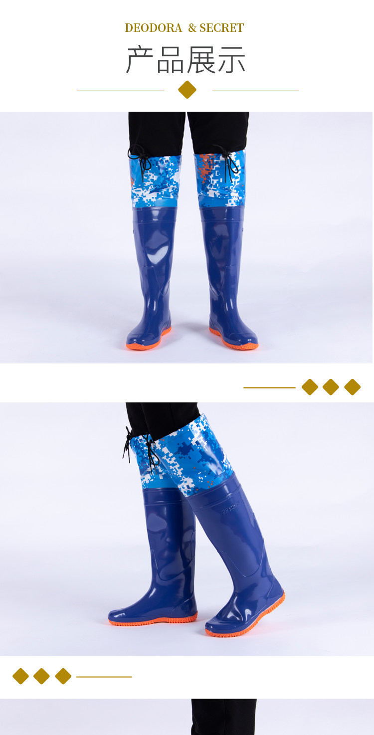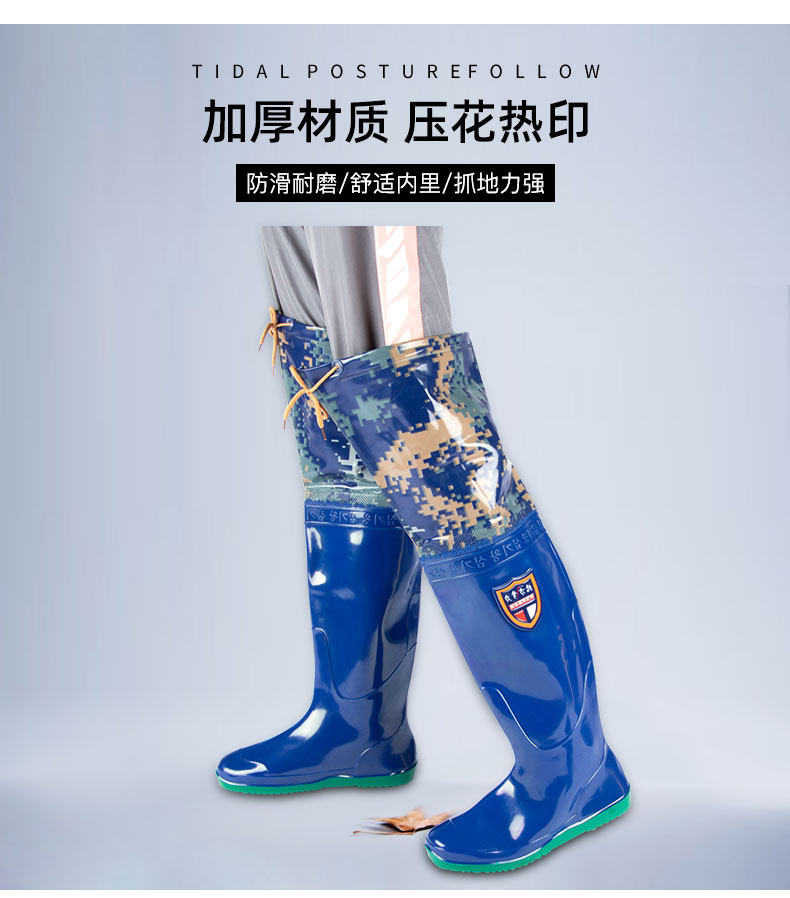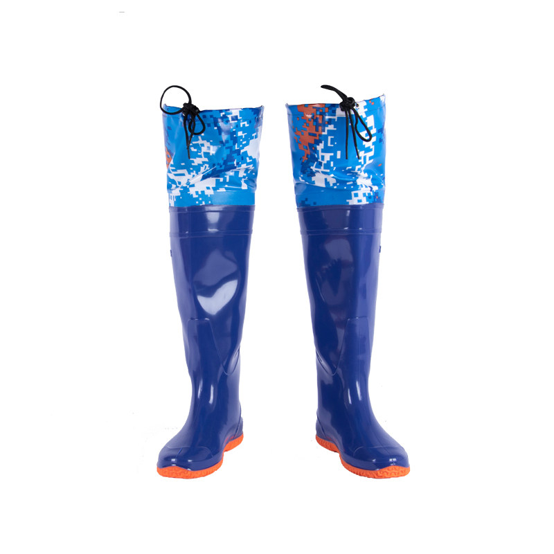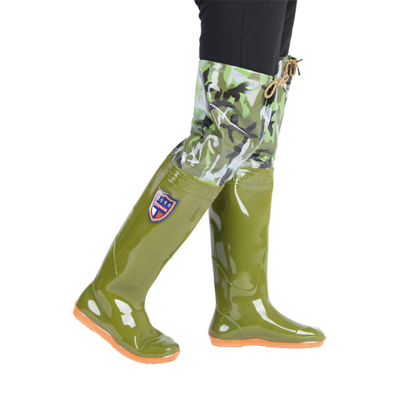 [新款插秧鞋男女超高筒水田靴软平底松紧下水鞋系带过膝牛筋钓鱼靴]