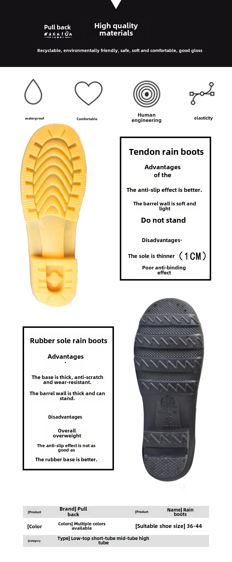 Нескользящие высокие износостойкие сапоги, обувь, низкая подошва, водонепроницаемые туфли на платформе