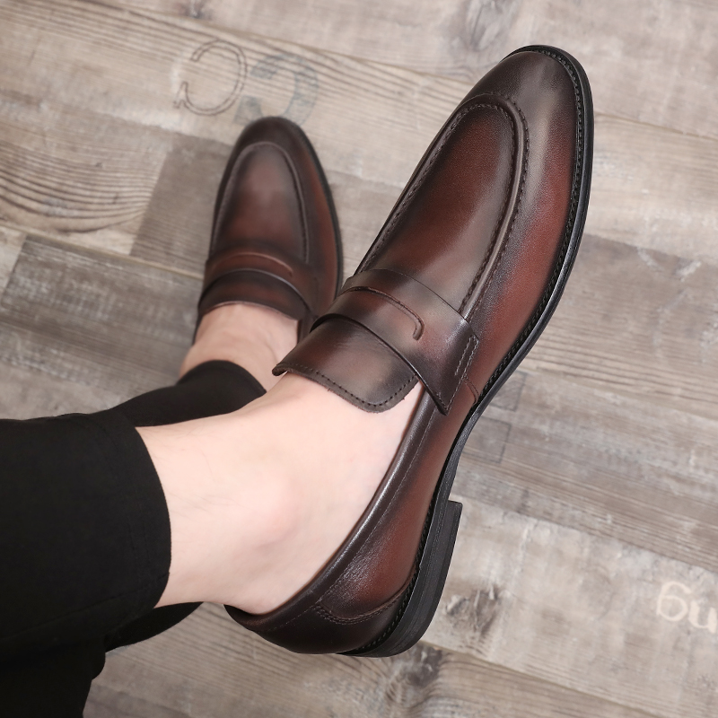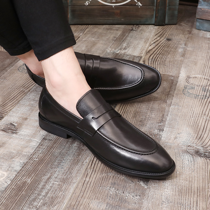 Мужские универсальные туфли для кожаной обуви в английском стиле, трендовая обувь для отдыха с заостренным носом, в корейском стиле, популярно в интернете, из натуральной кожи