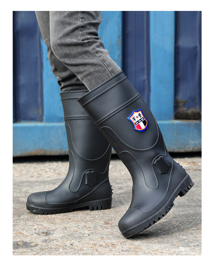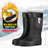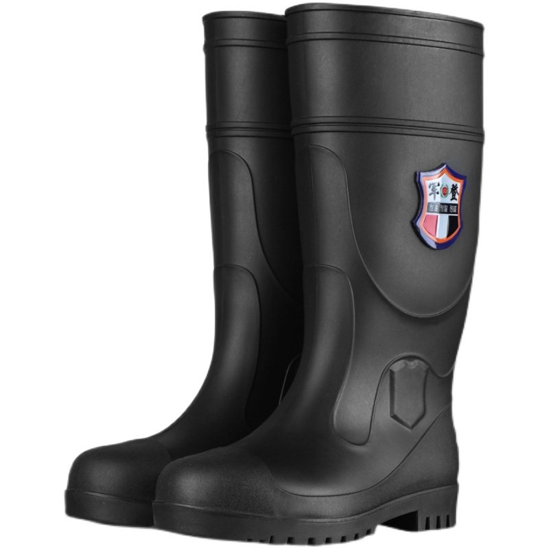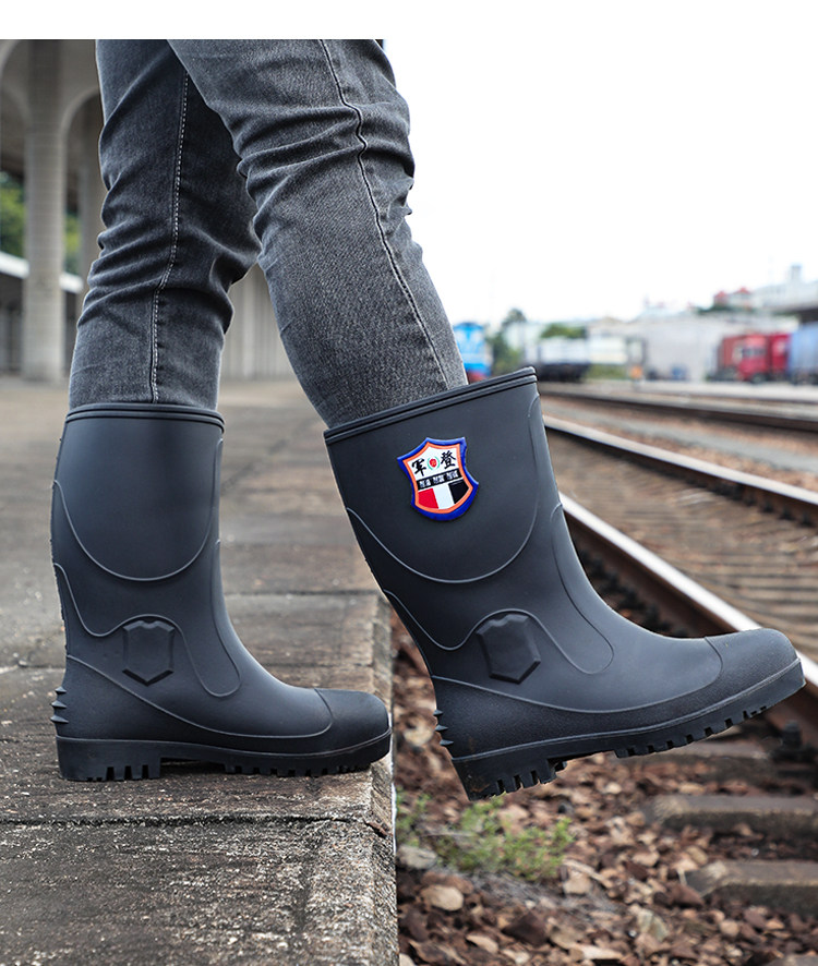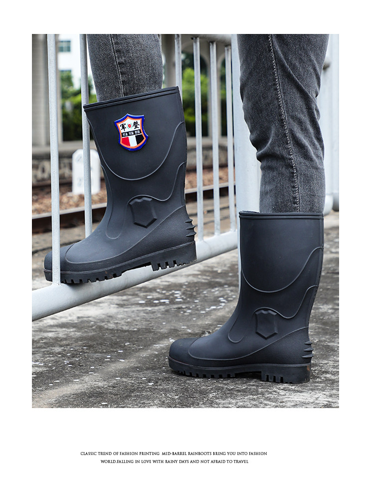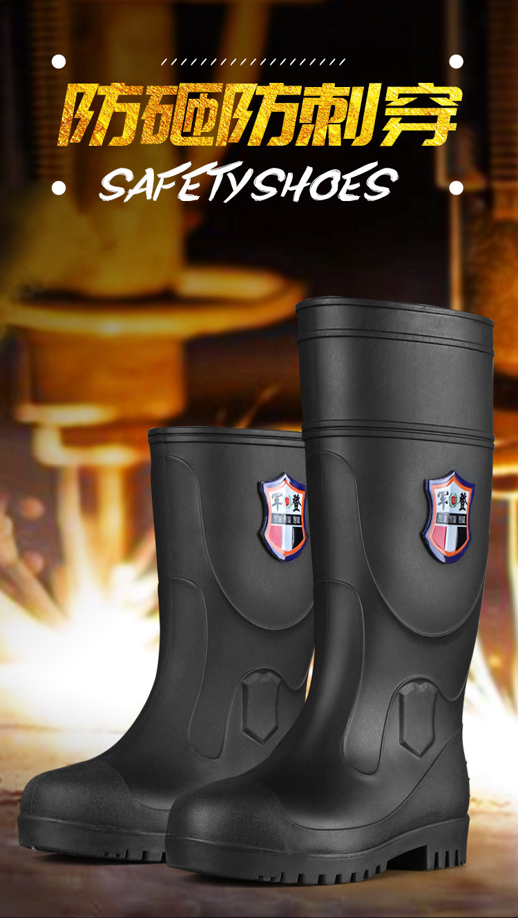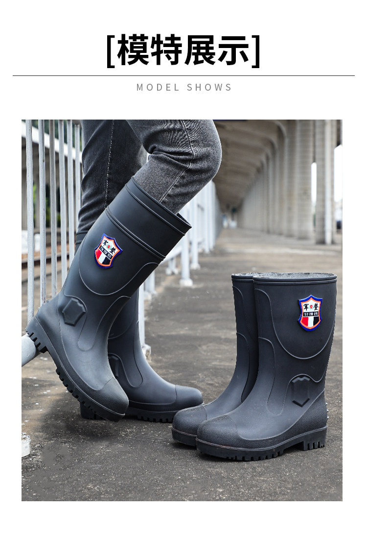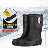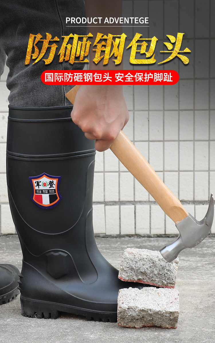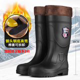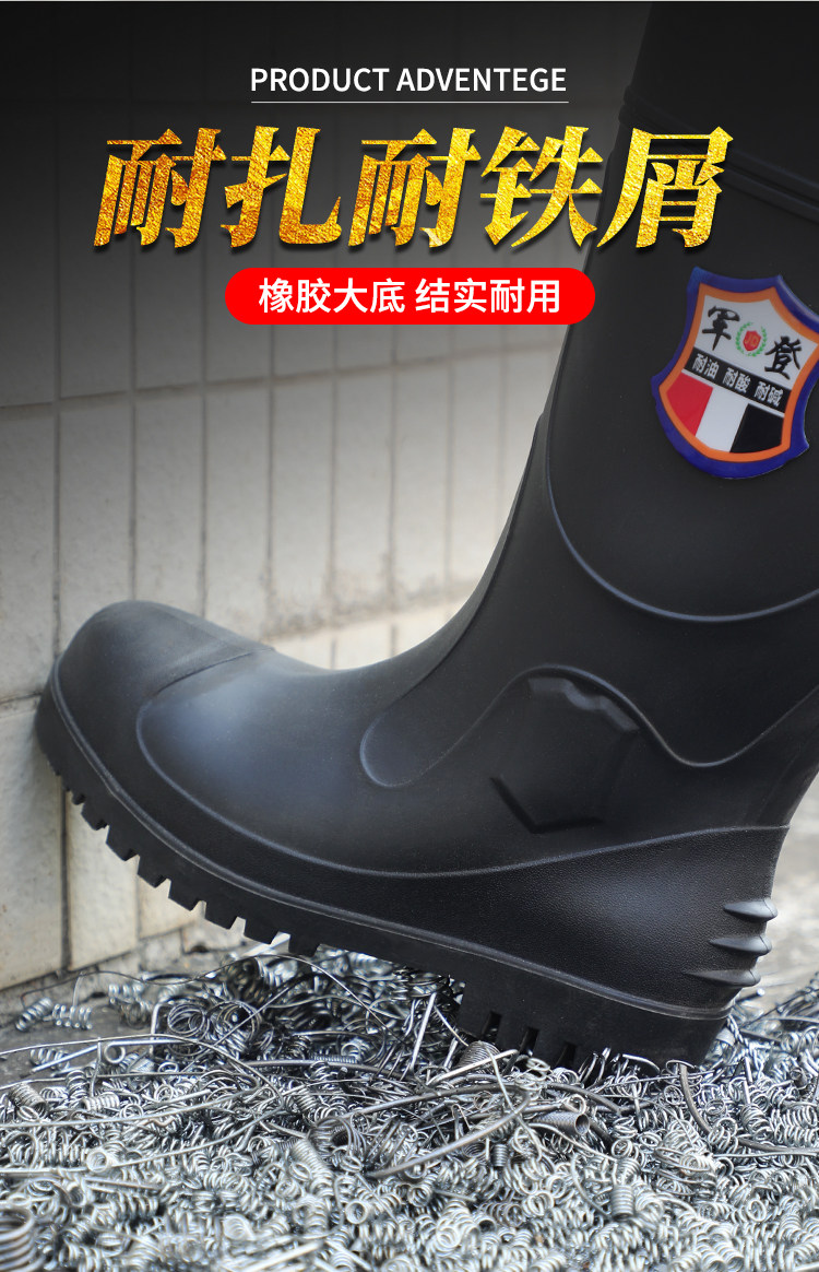 军登 Стальная стальная подошва сгущенные дождевые ботинки плюс бархатная теплая средняя трубная водяная обувь мужская строительная площадка антисмаш