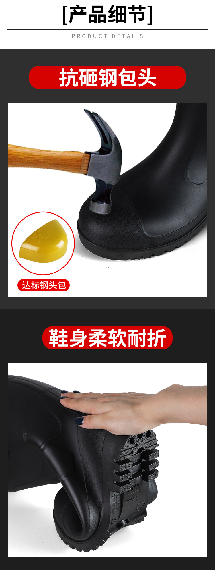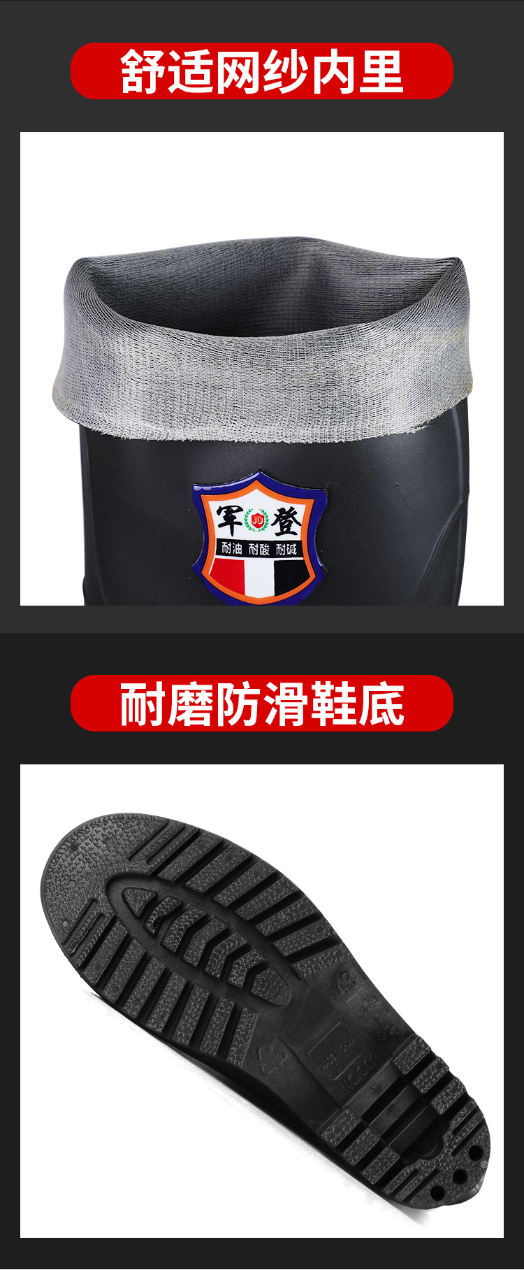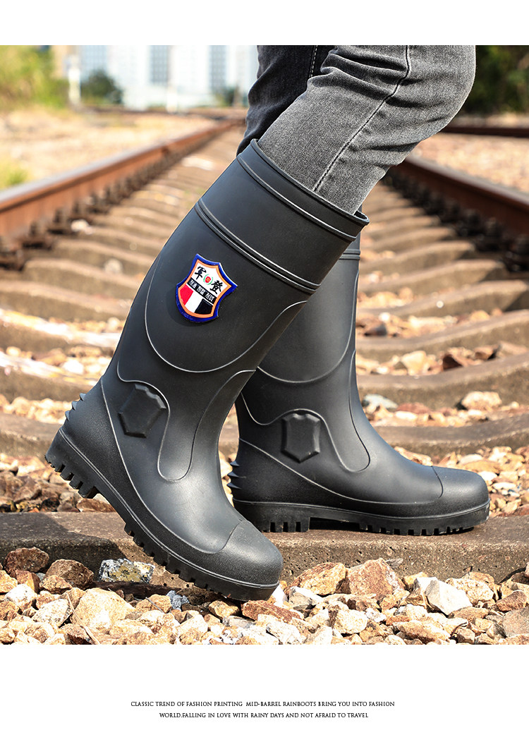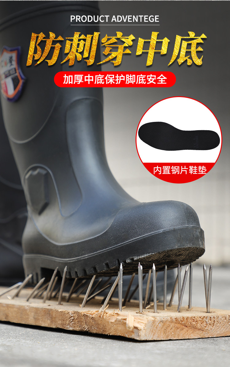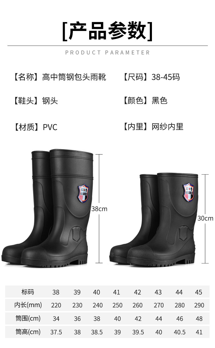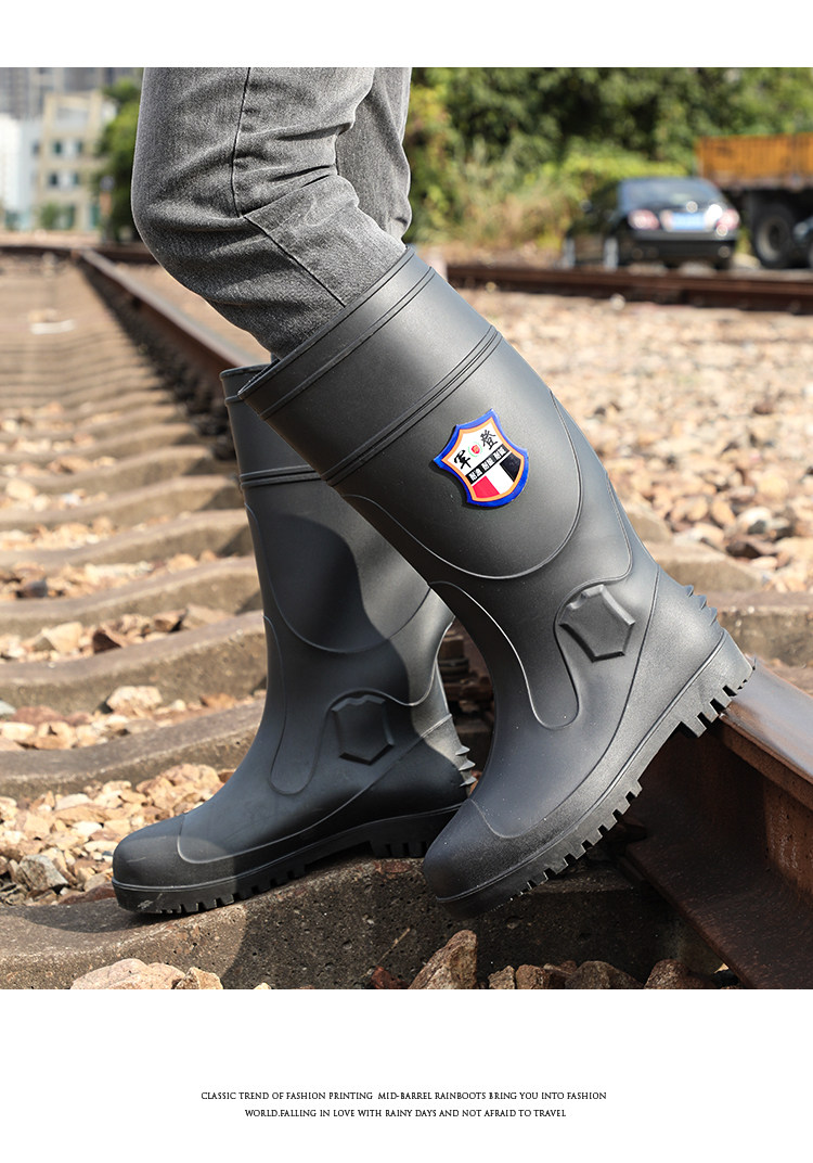 军登 Стальная стальная подошва сгущенные дождевые ботинки плюс бархатная теплая средняя трубная водяная обувь мужская строительная площадка антисмаш