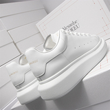 Демисезонная высокая белая обувь на платформе для влюбленных, из натуральной кожи