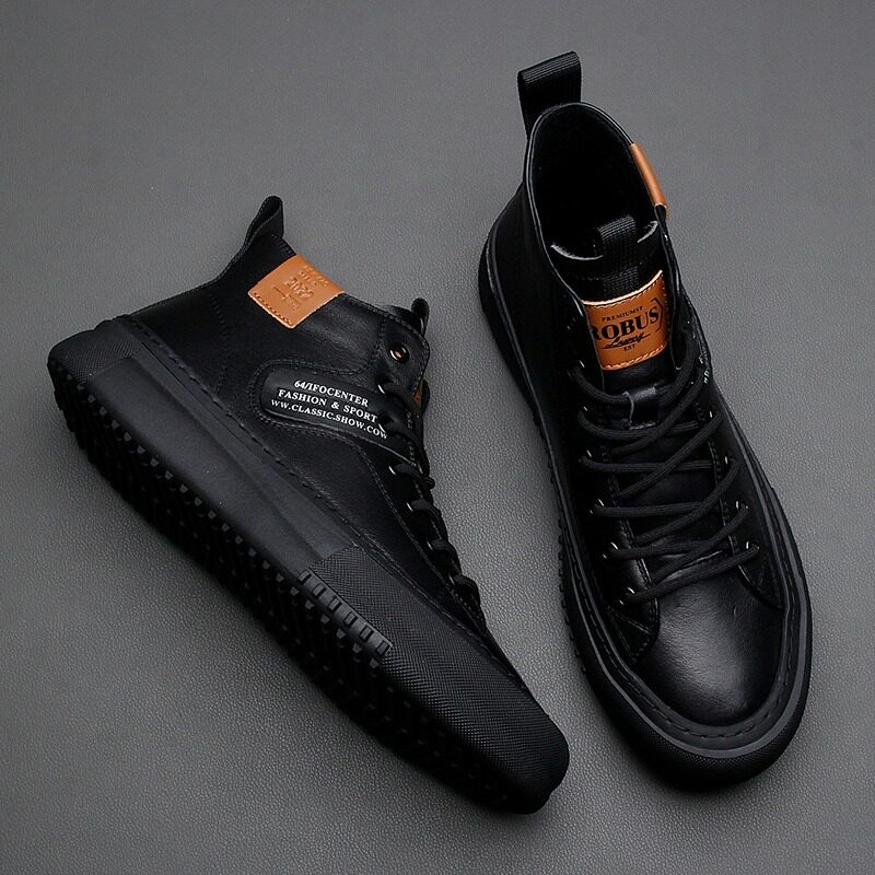 Martens, мужская зимняя высокая обувь, туфли, кожаные короткие сапоги на платформе, из натуральной кожи, в корейском стиле