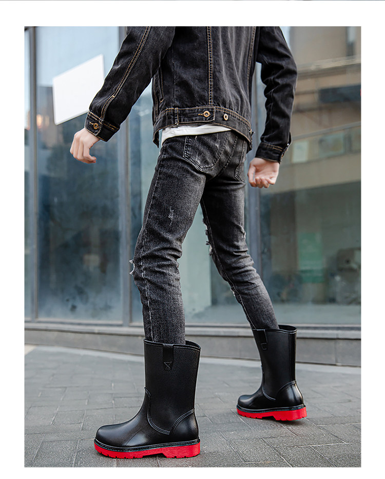 Модные нескользящие туфли для мальчиков, износостойкие рабочие высокие сапоги, средней длины