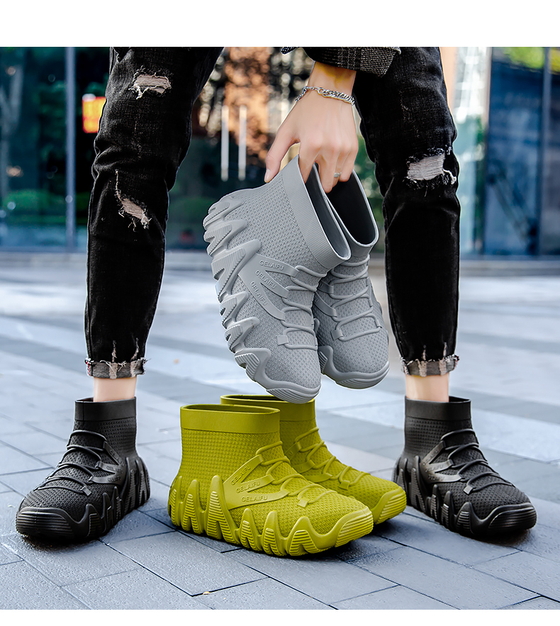 2024 Новые модные дождевые туфли мужская резиновая обувь водонепроницаем