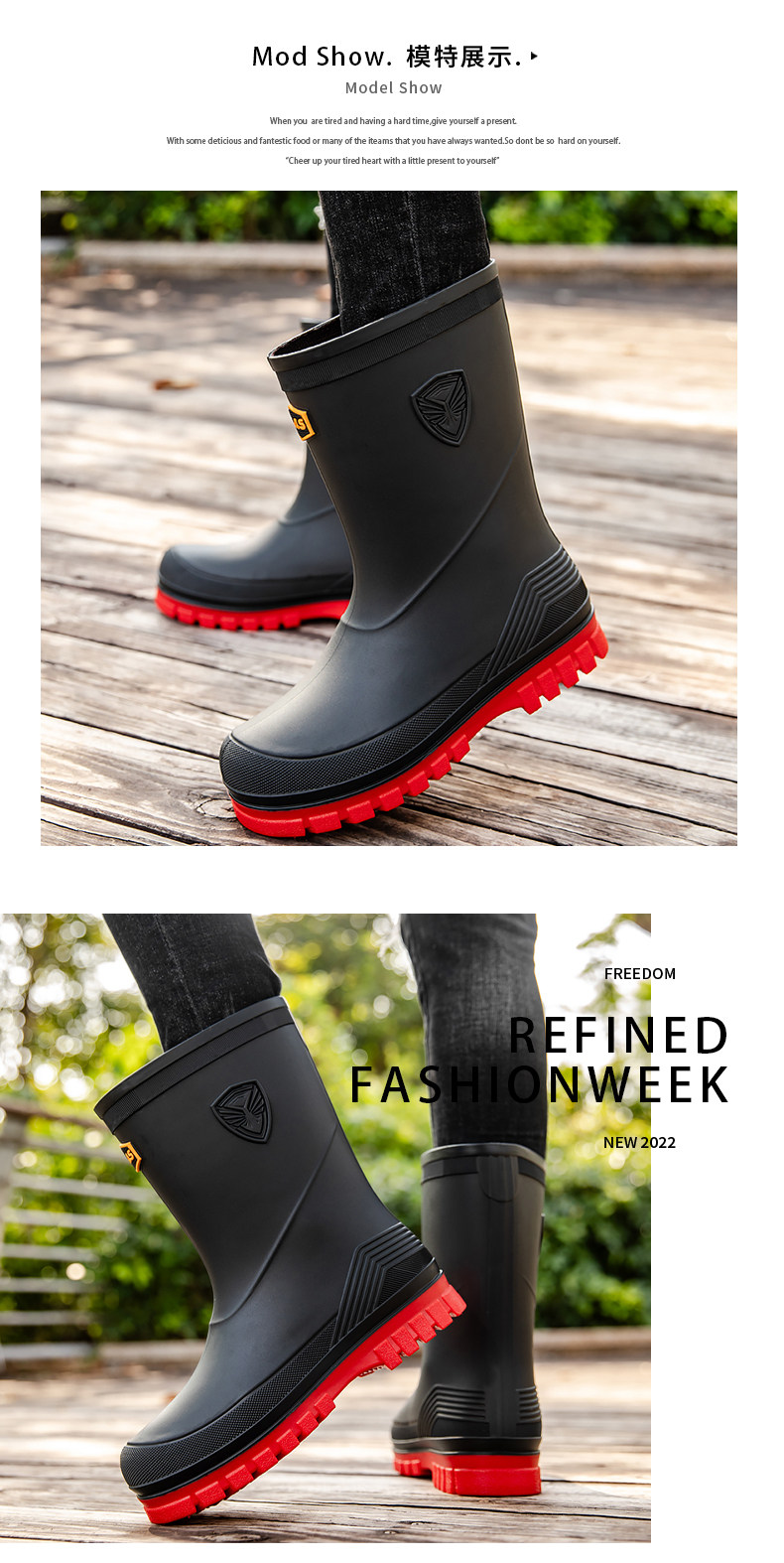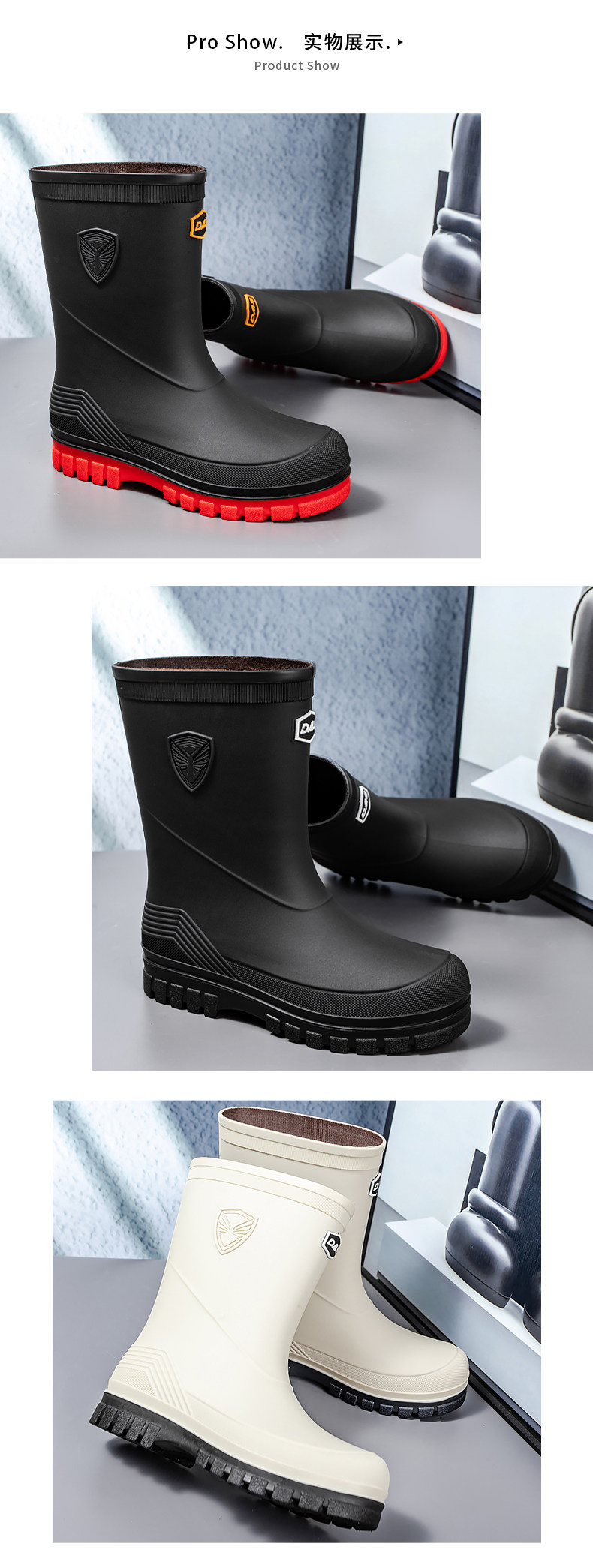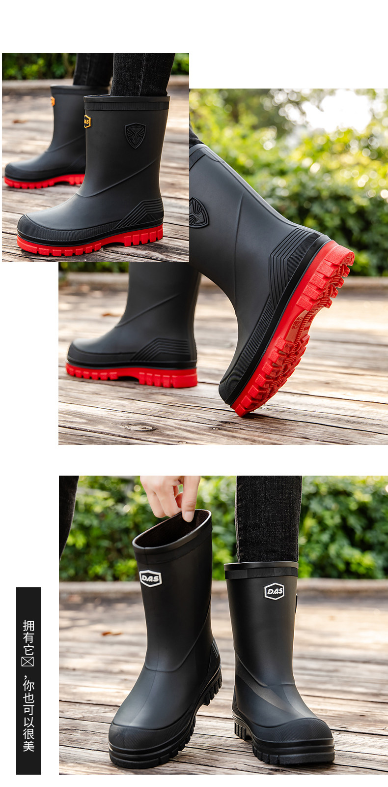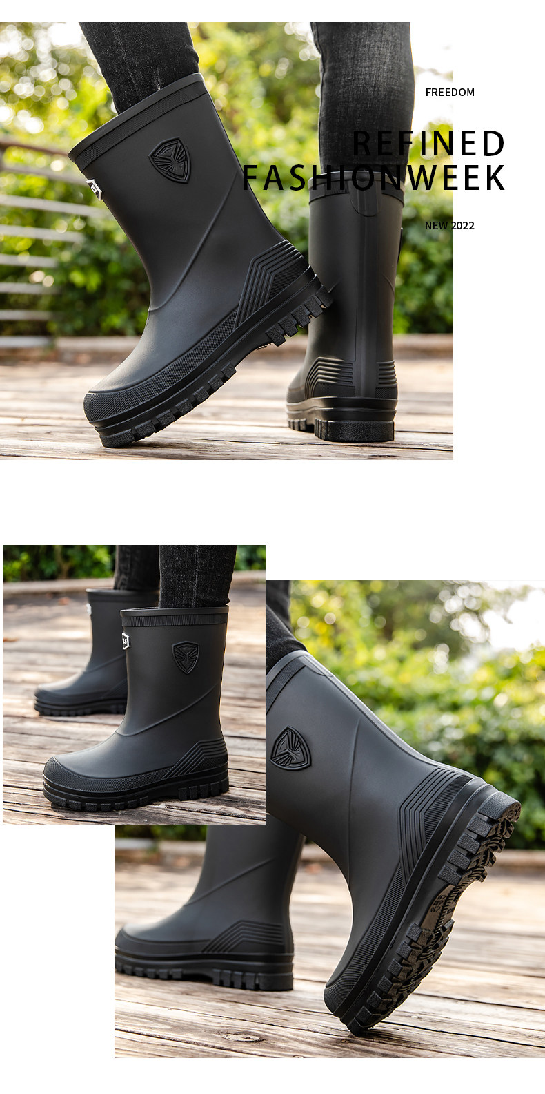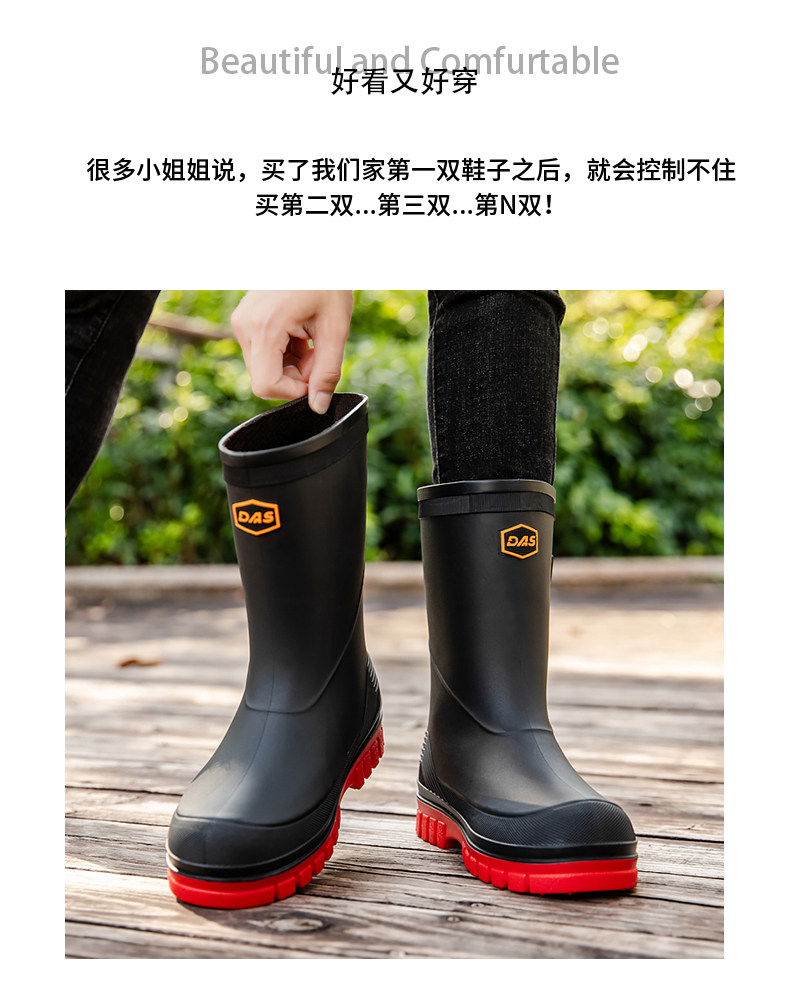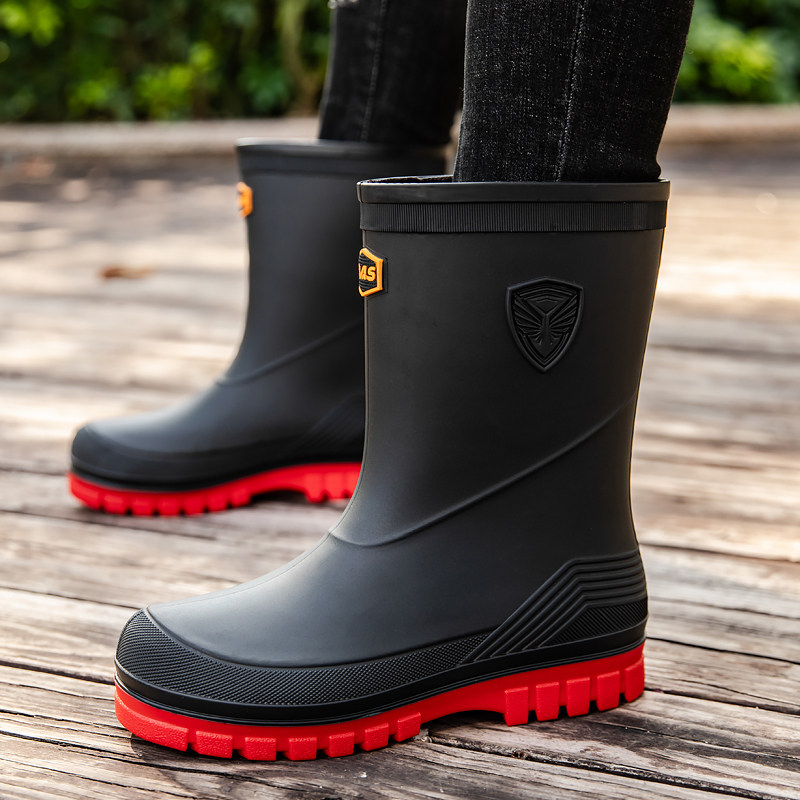 Дождевые туфли мужская средняя труба, не скользящая водонепроницаем
