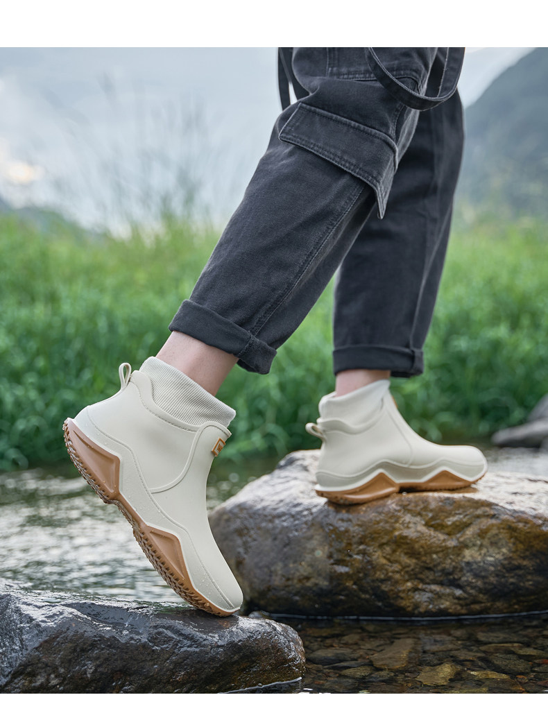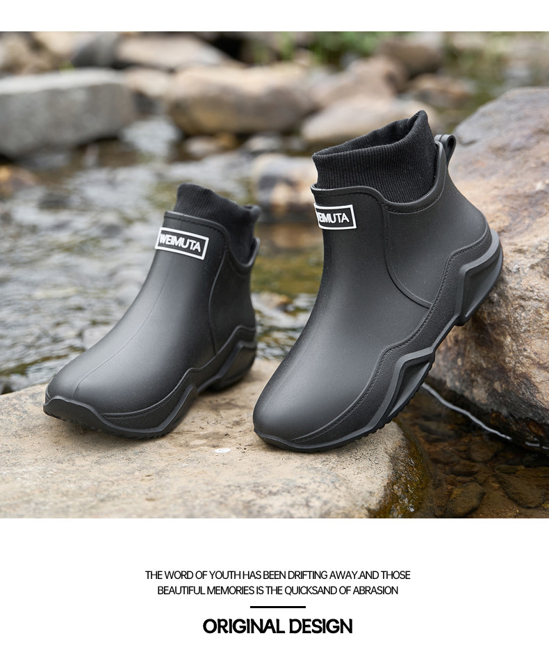 Мужские дождевые туфли с плюшевыми бархатными модными ботинками для взрослых для женских водонепроницаемых и не скользящих водных туфлей для кухонных резиновых туфлей
