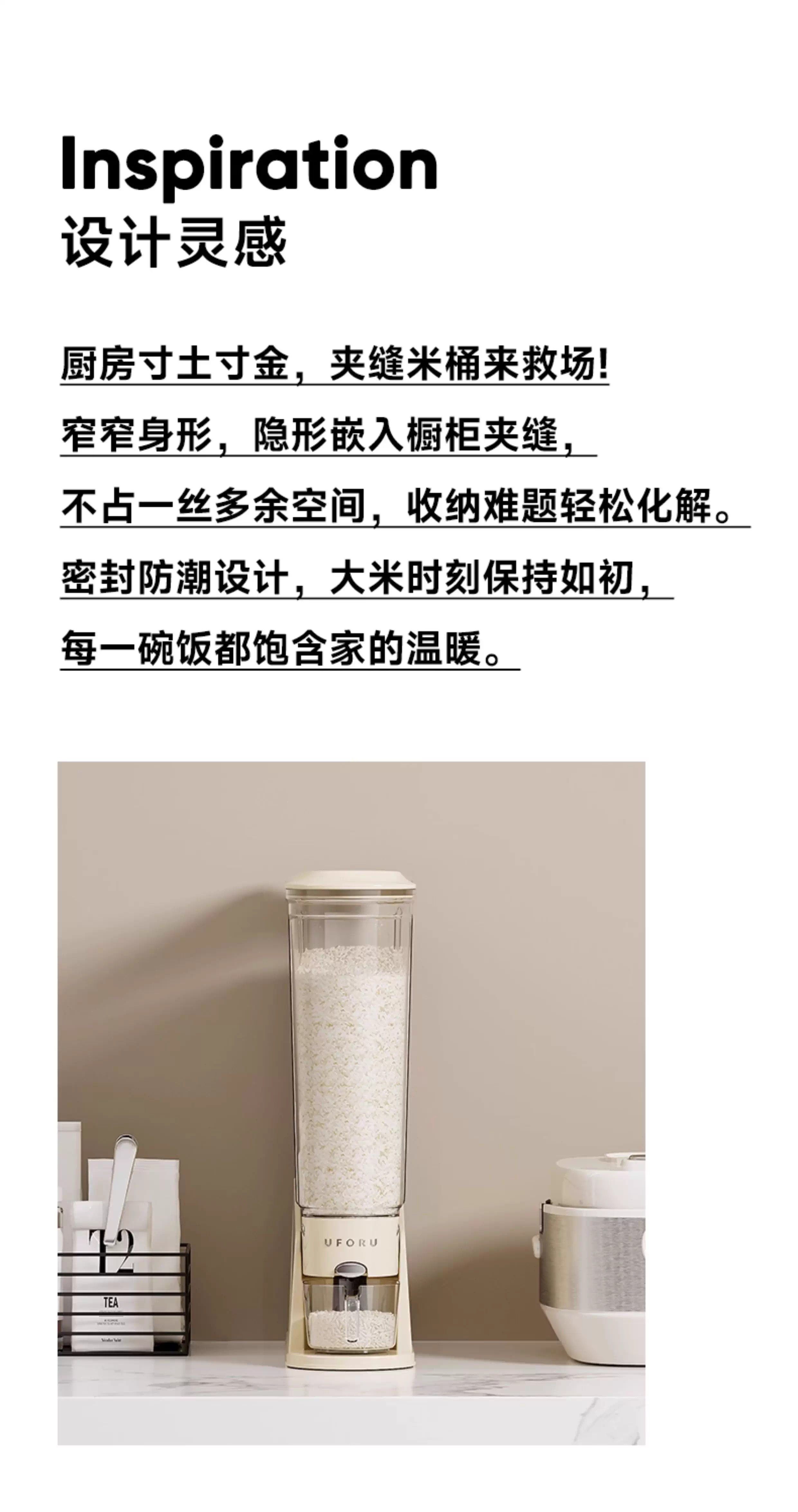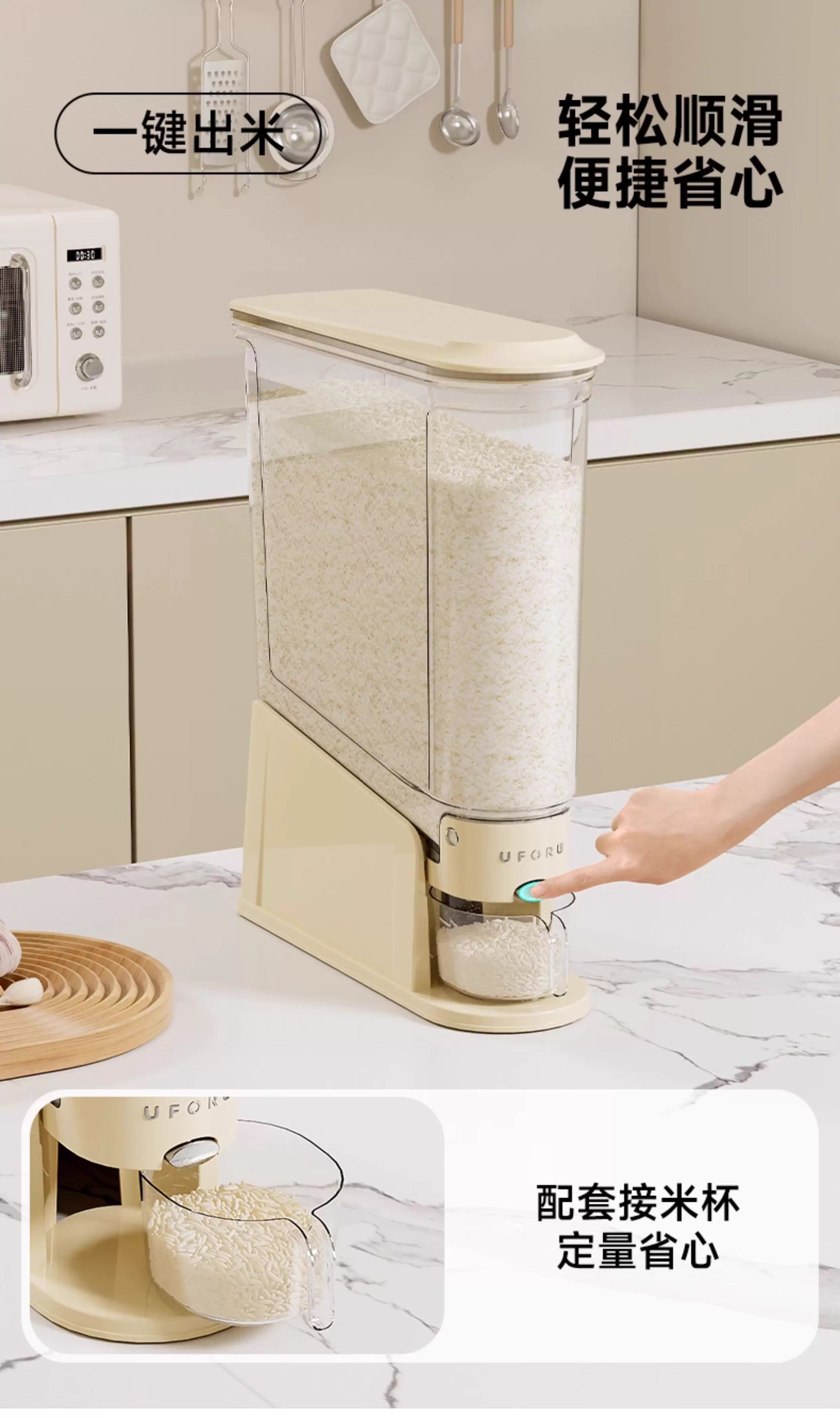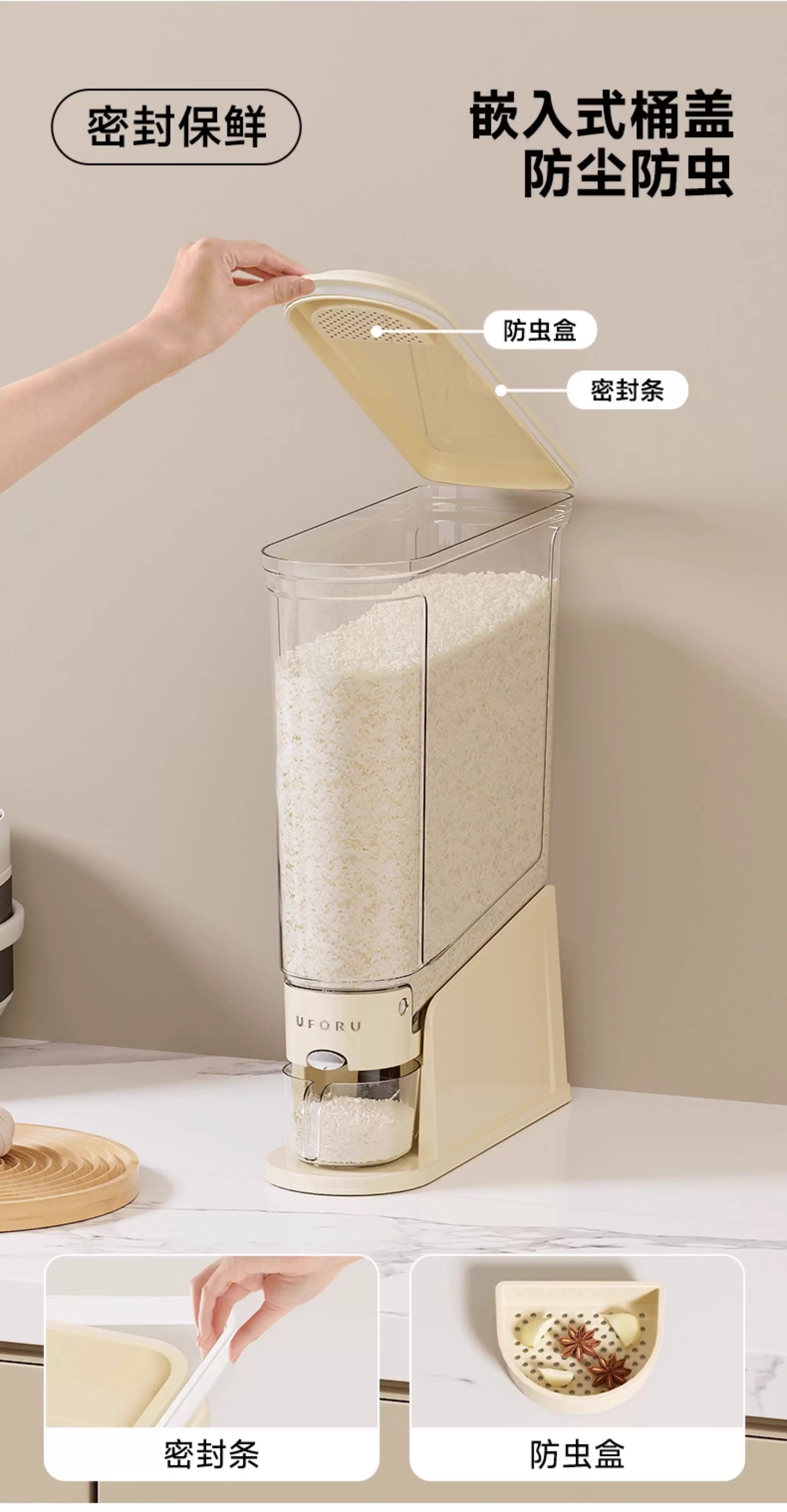 Нажатие рисовой бочки домохозяйства 2025 Новый насекомых и влажный герметичный рисовый цилиндр зажимая узкая длинная пищевая рисовая коробка