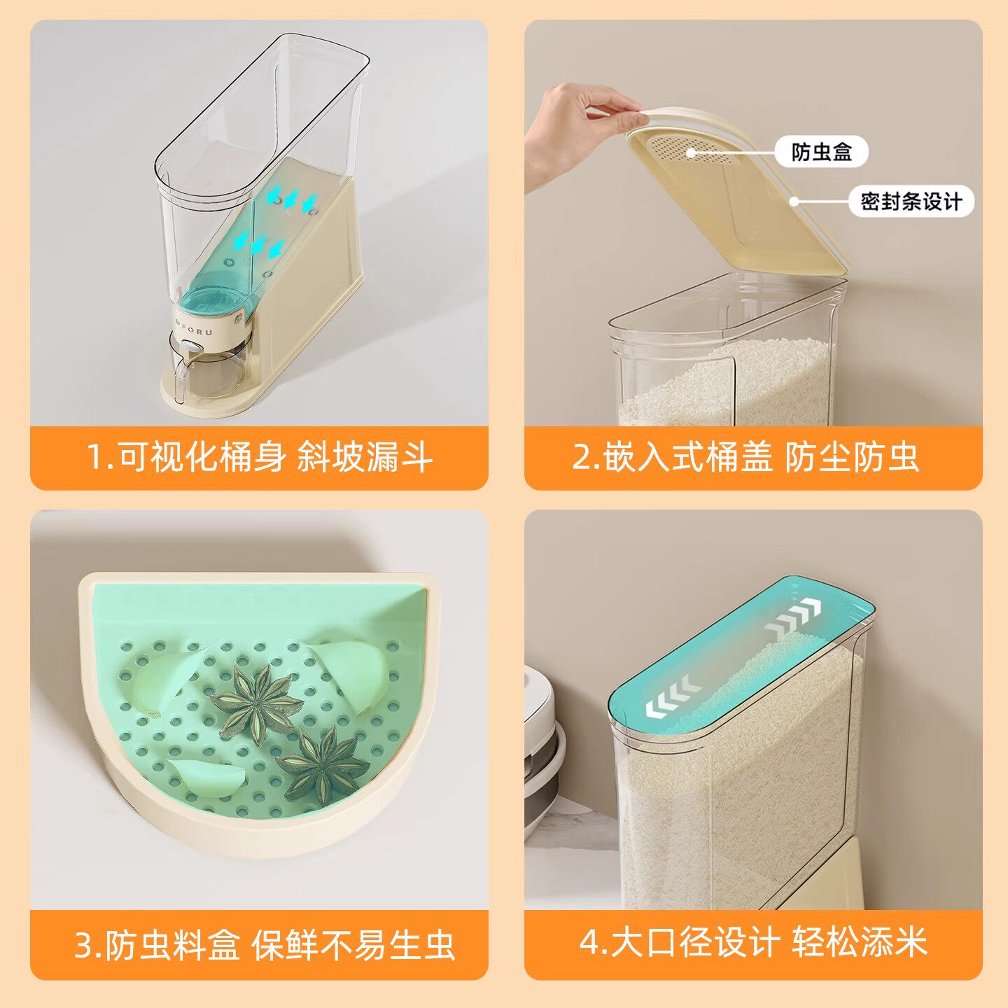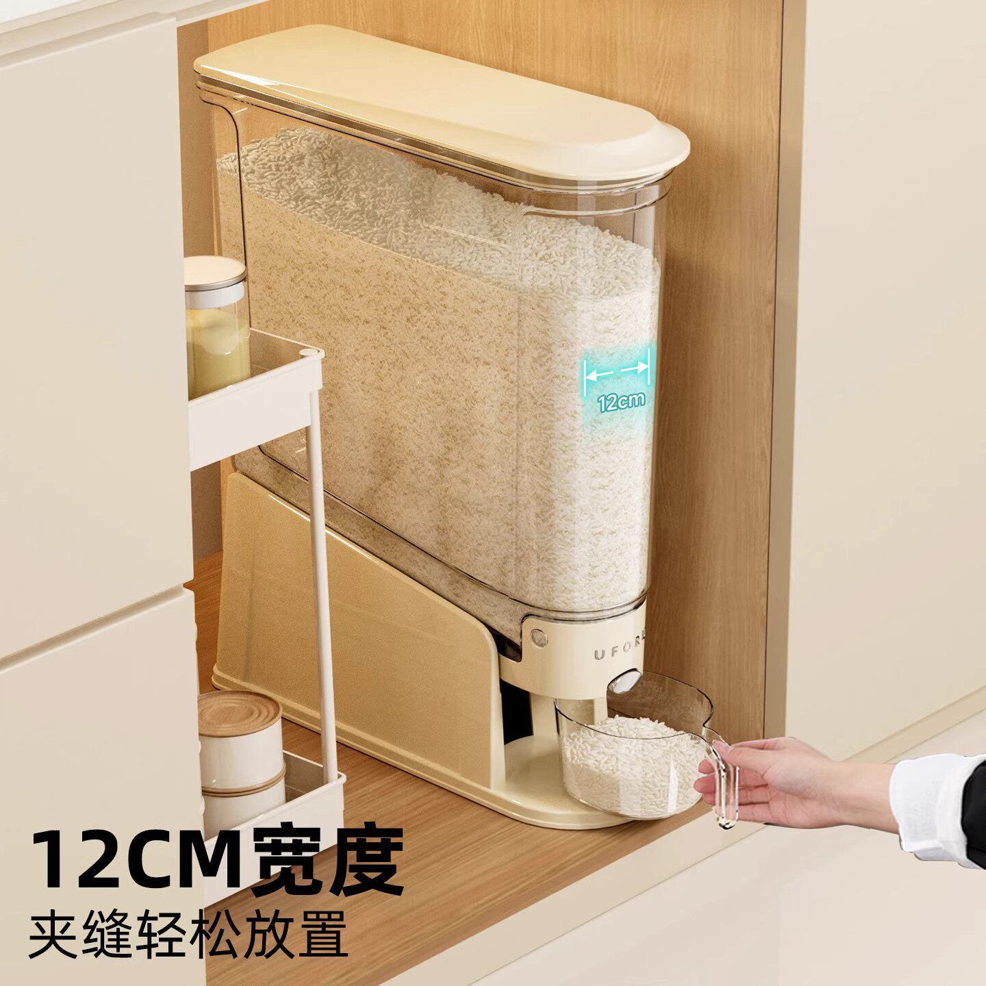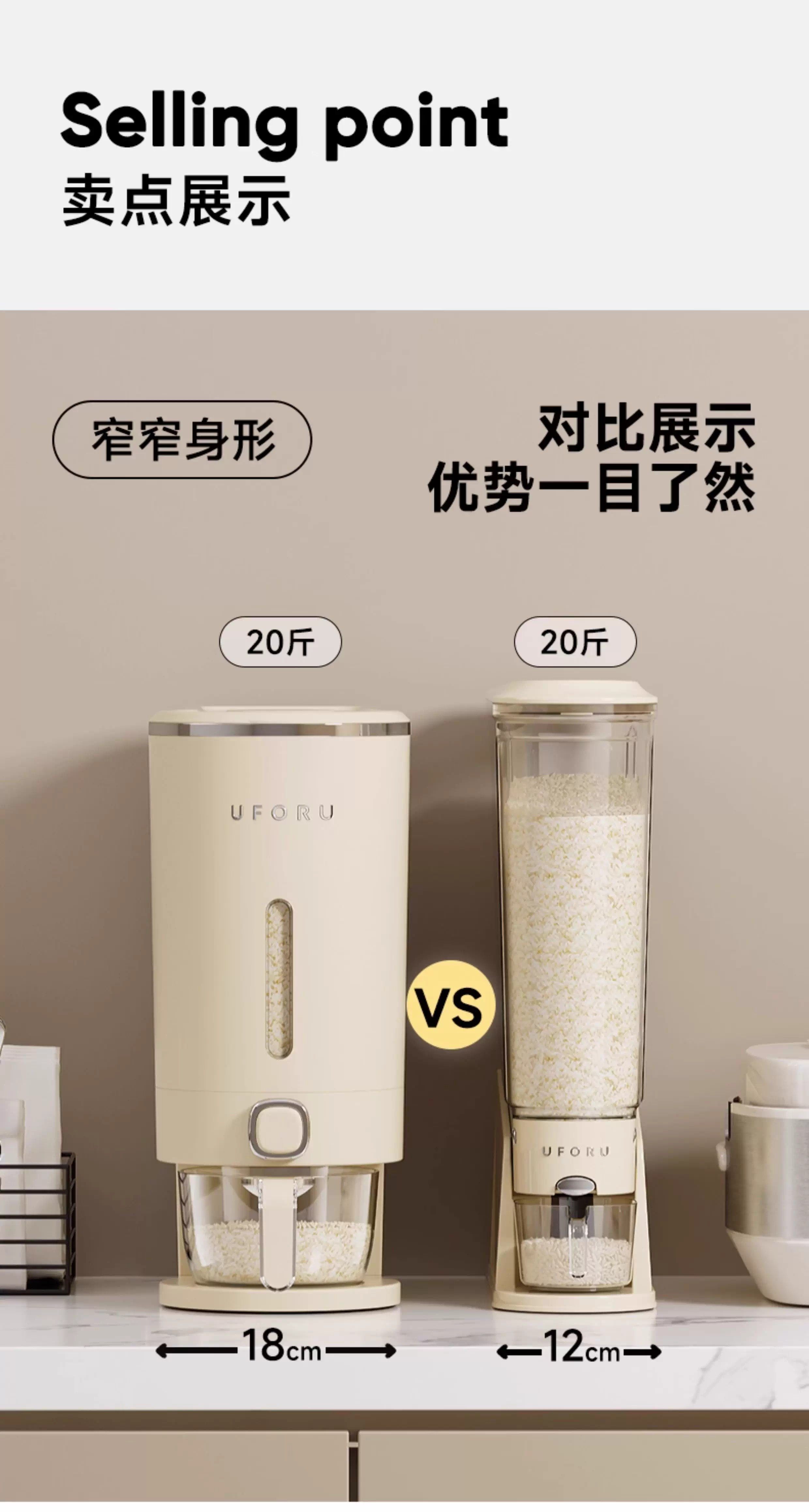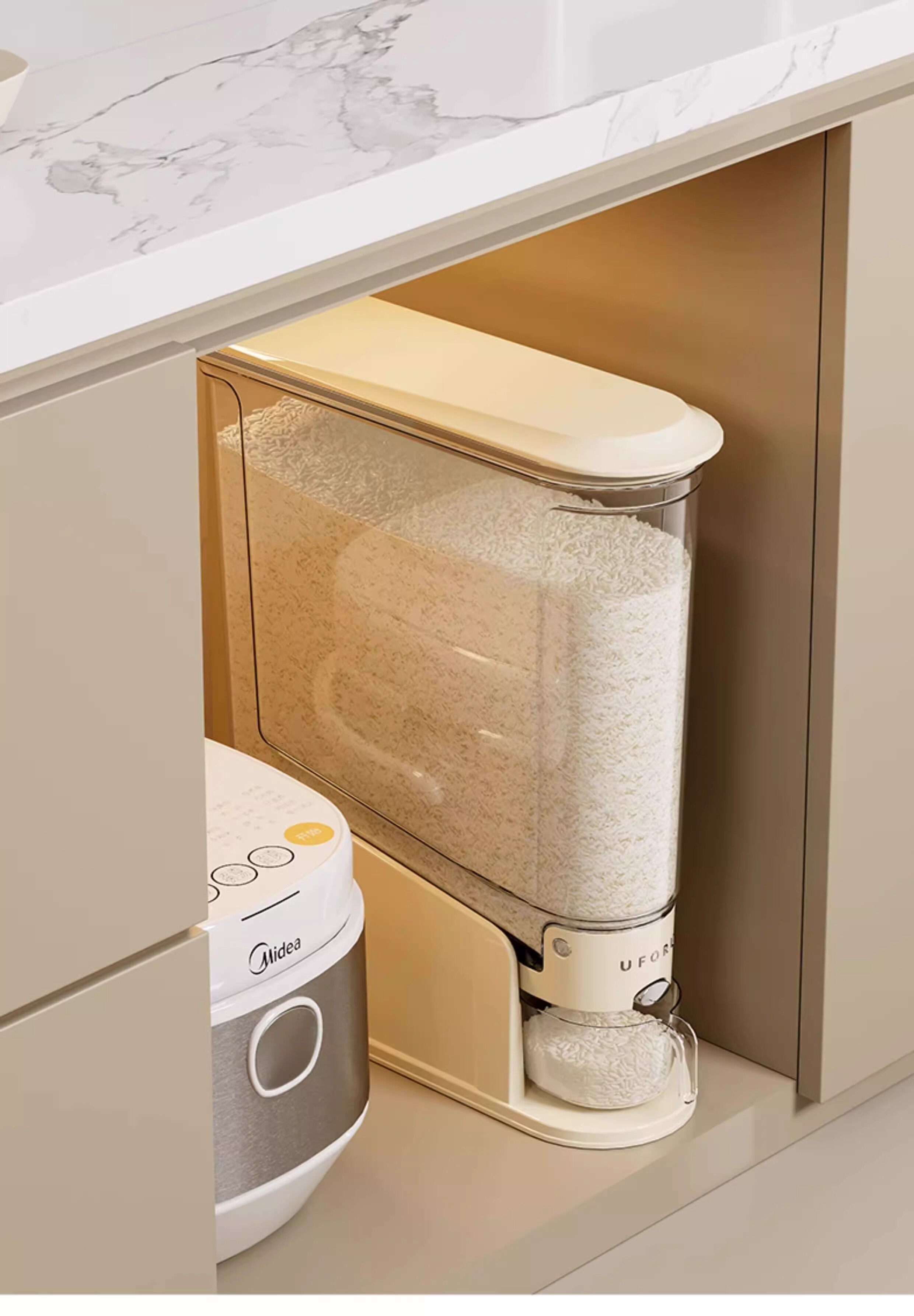Нажатие рисовой бочки домохозяйства 2025 Новый насекомых и влажный герметичный рисовый цилиндр зажимая узкая длинная пищевая рисовая коробка