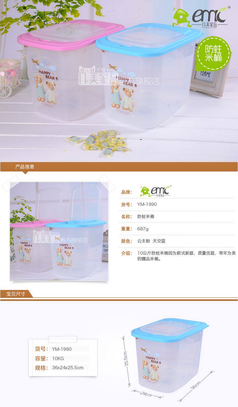 Yimei 10 кг анти -ксад рисовая бочка для муки для лицевой муки, хранение риса, рис, получение чашки 1990
