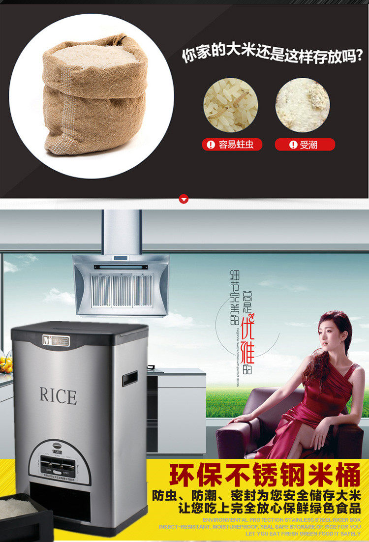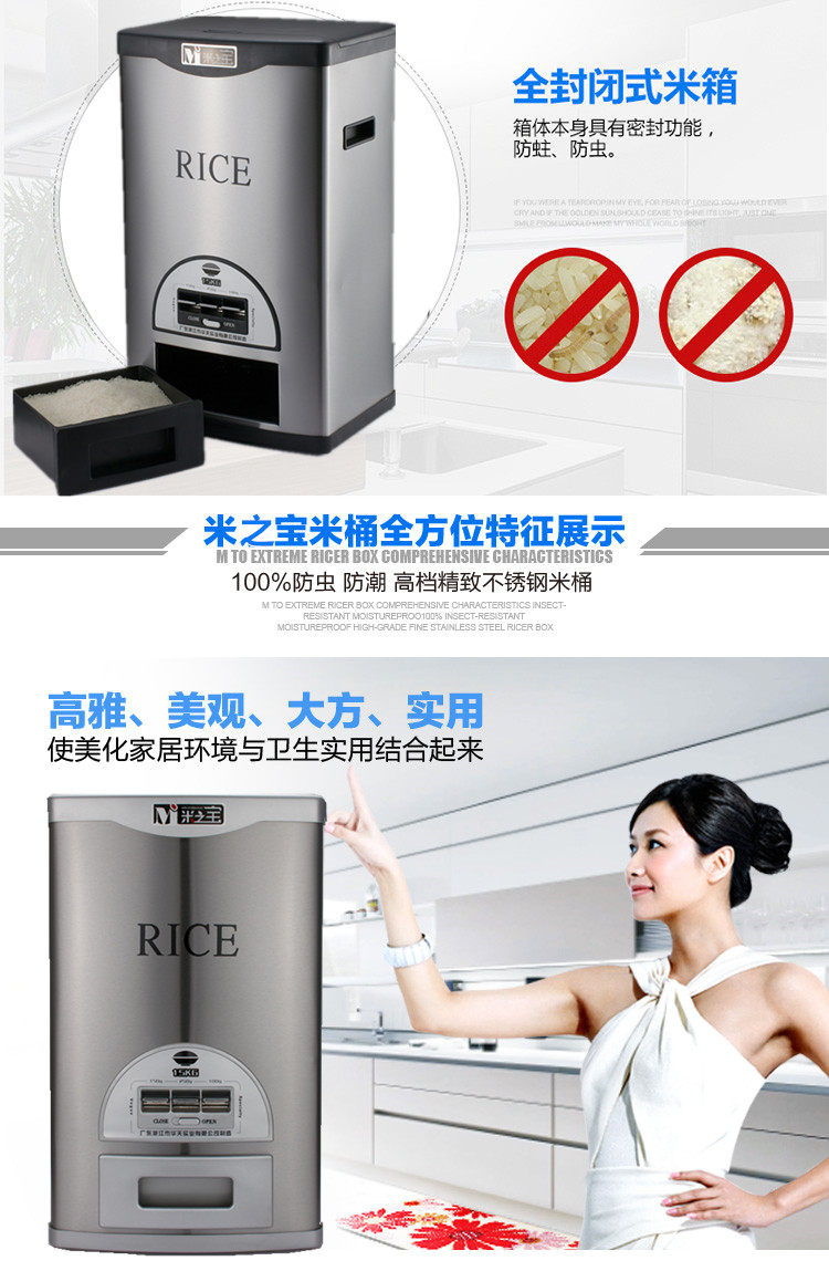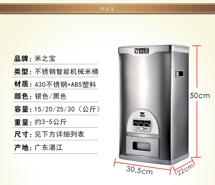 Mi Zhibao пищевая пищевая пищевая плода, хранение рисовой коробки, широкая влажная насекомого, рисовое шкаф 25 кг15 кг20 кг MI Бесплатная доставка.