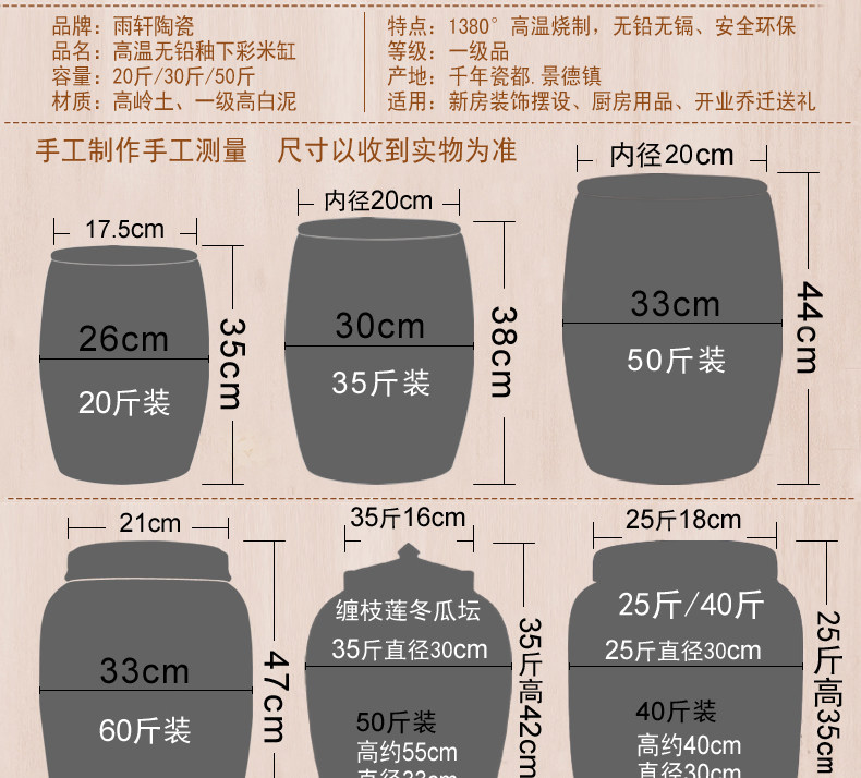 20 Catties, 30 кот керамического рисового цилиндра, рисовый ковш, домашний цилиндр растительного масла 50 кот с крышкой крышки с покрытием цилиндрового цилиндра для маринованного растительного цилиндра