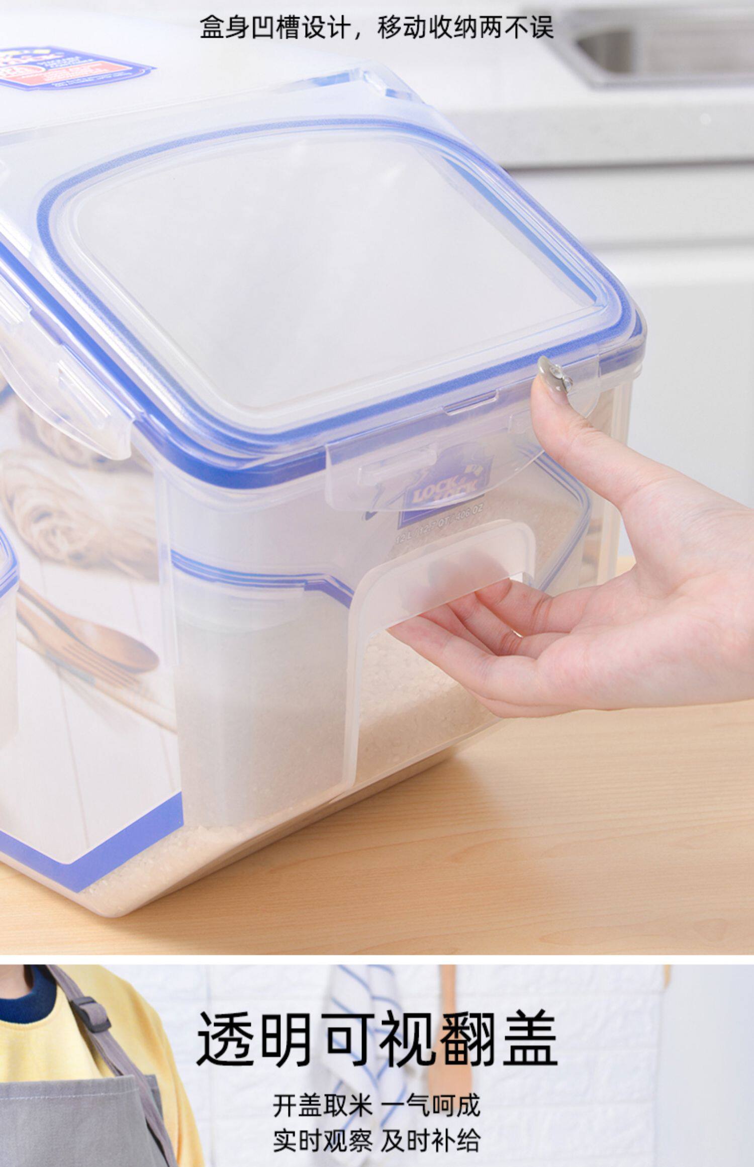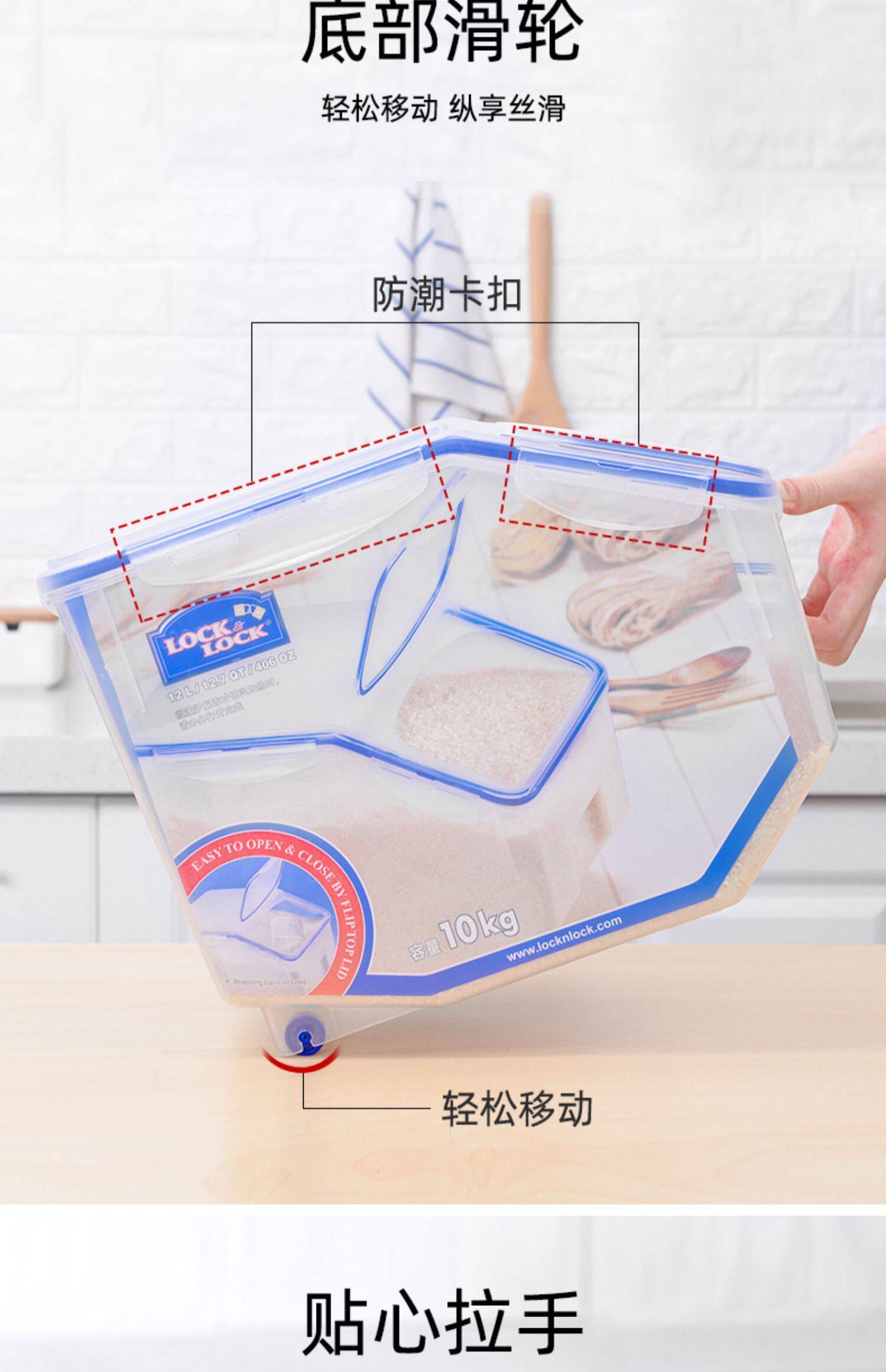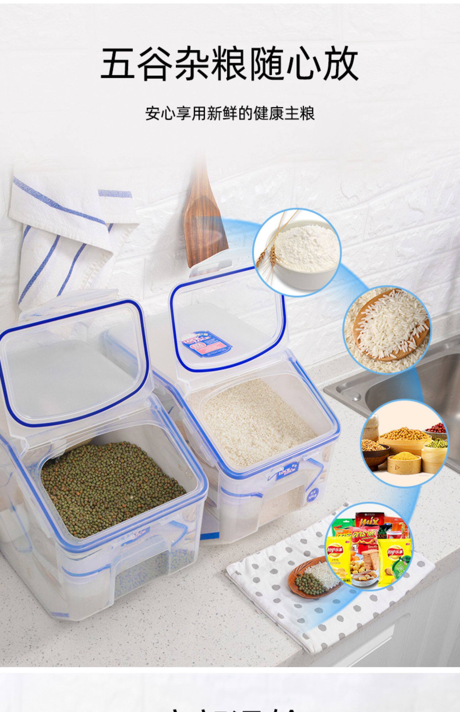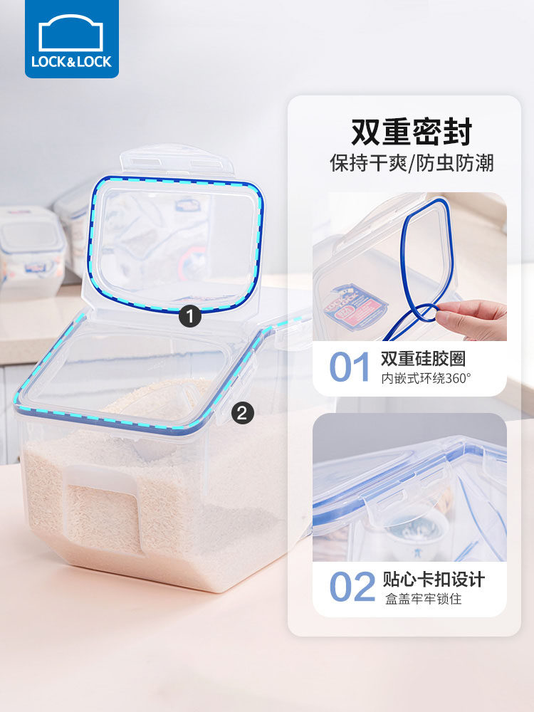 Le Buckle, рисовое ведро, ствол на поверхность рисового бака для бытового риса, защита от влаги, противодействие рисовым контейнеру, пищевая пищевая коробка -Распространение рисовой коробки