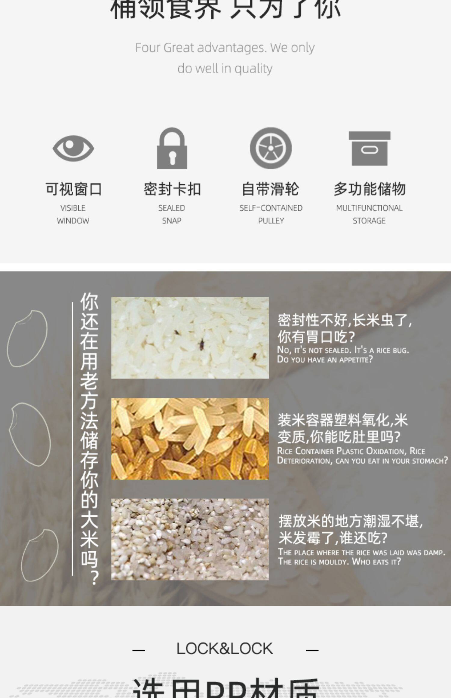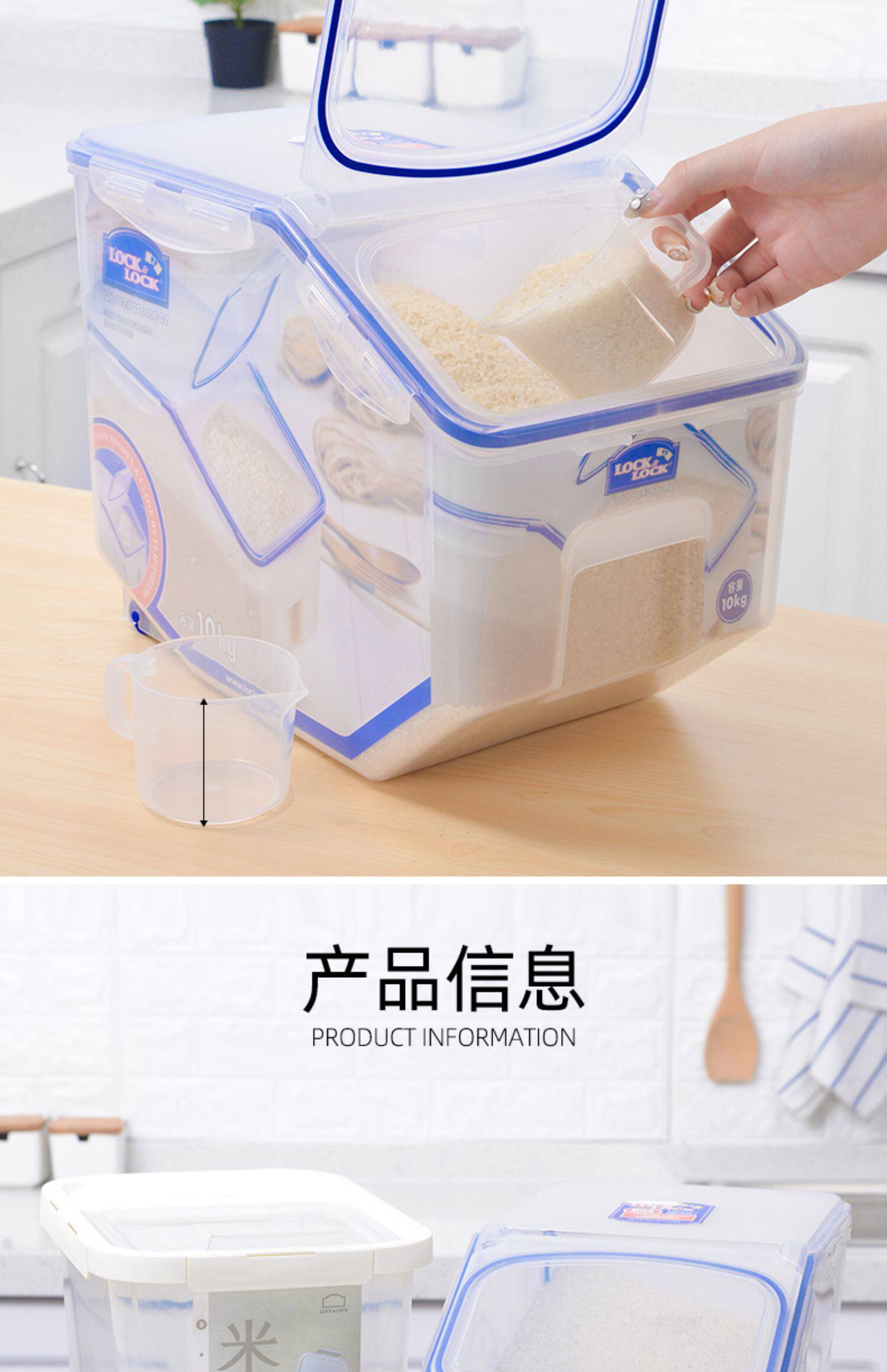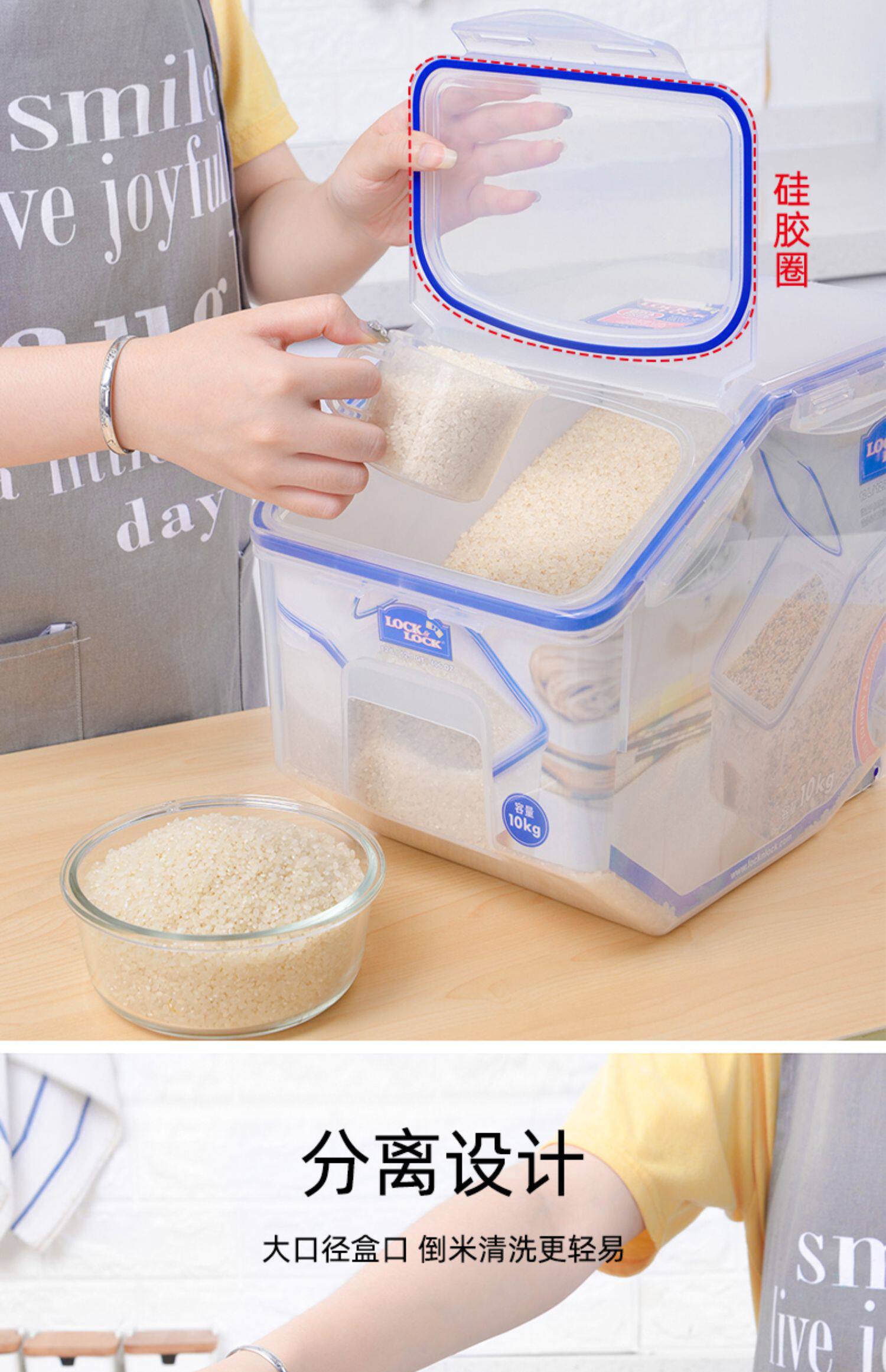 Le Buckle, рисовое ведро, ствол на поверхность рисового бака для бытового риса, защита от влаги, противодействие рисовым контейнеру, пищевая пищевая коробка -Распространение рисовой коробки
