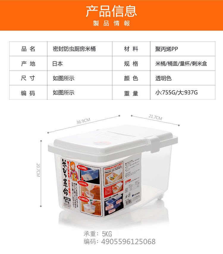 Япония импортированная влажность -противоположная анти -индекция рисовая кухня для рисовой коробки для сохранения риса пластиковая герметичная ящик для хранения рисового зерна