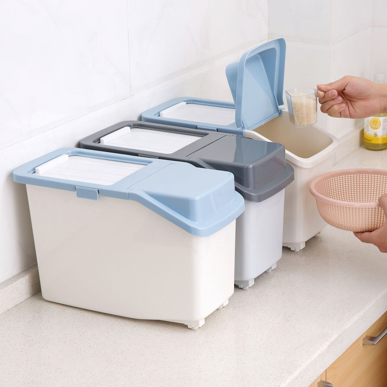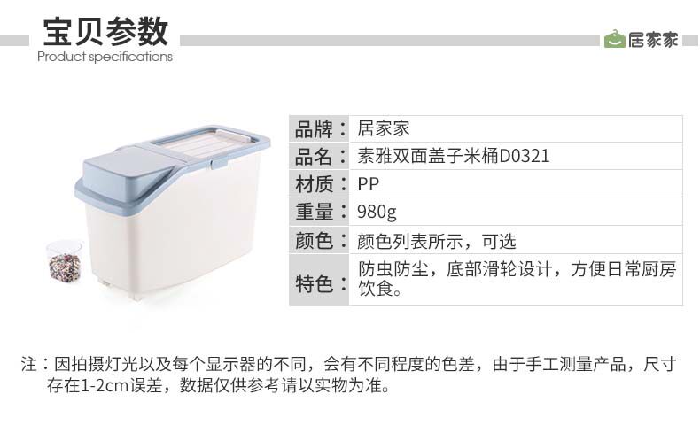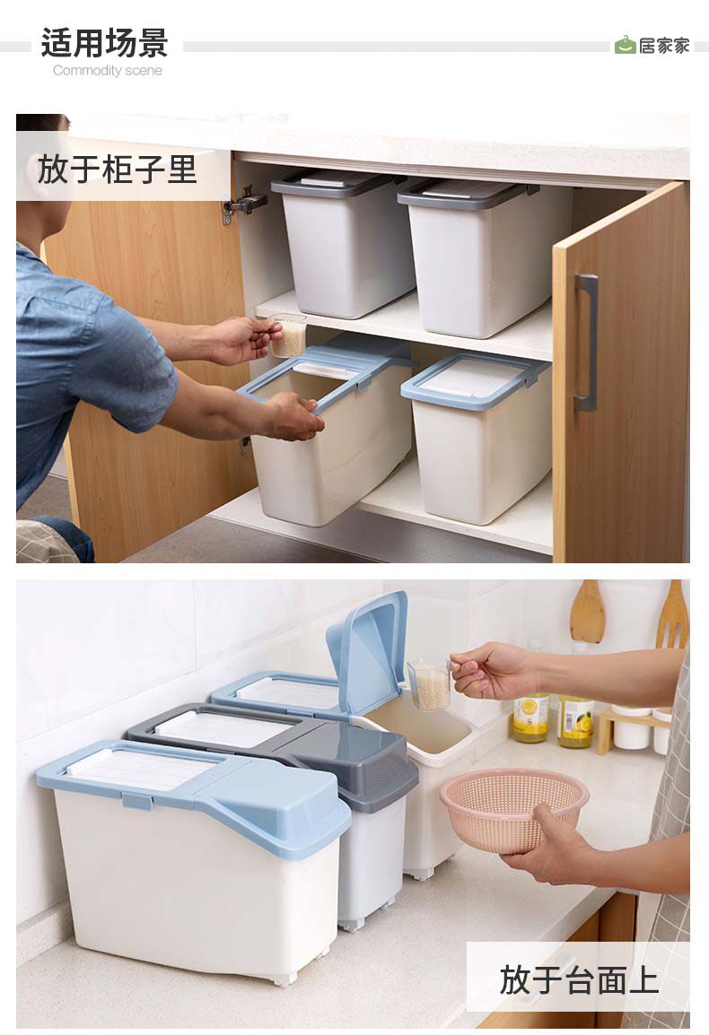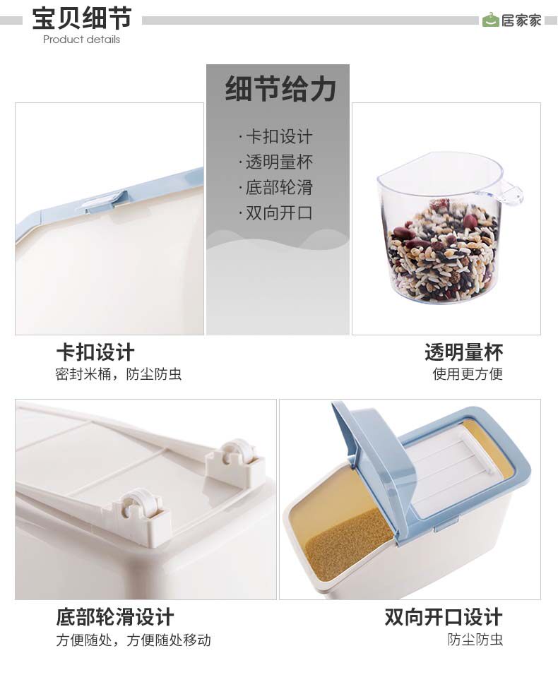 居家家 Пластиковая насекомые -надежная рисовая коробка влага -рисовая ствола с рисовой стволом 10 кг домашняя кухня рисовая лапша ящика для хранения порошка