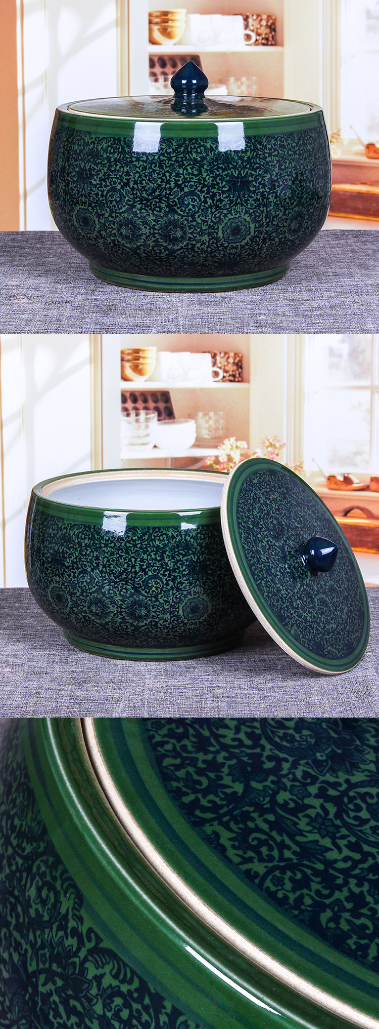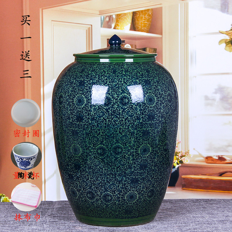 Китайский классический классический джингхен керамика 20 кот 50 кот 100 кг 100 кг 100 кот хранения рисовой банка банка для маринованных маринованных маринованных маринованных мясо.