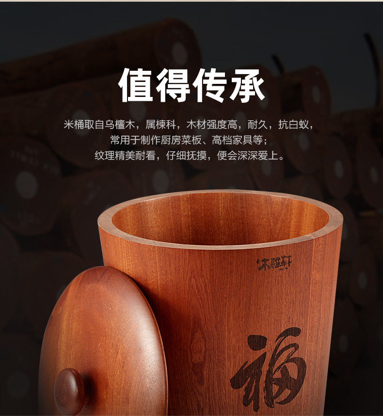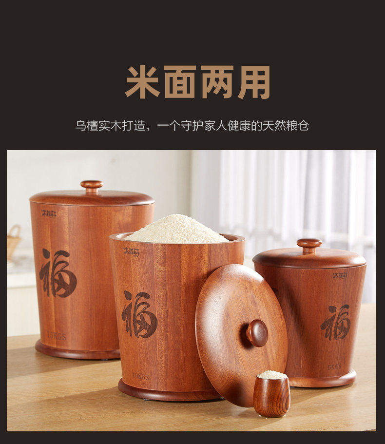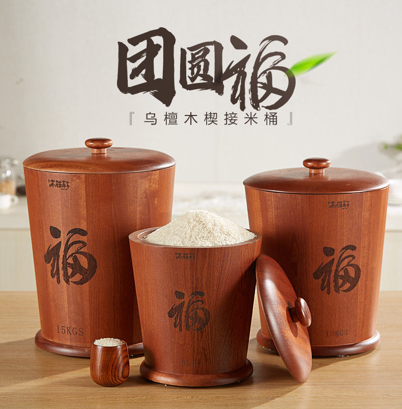 木雅轩 Черный сандаловый дерево рисовый ствол хранения рисовой коробки с рисовой коробкой с моты