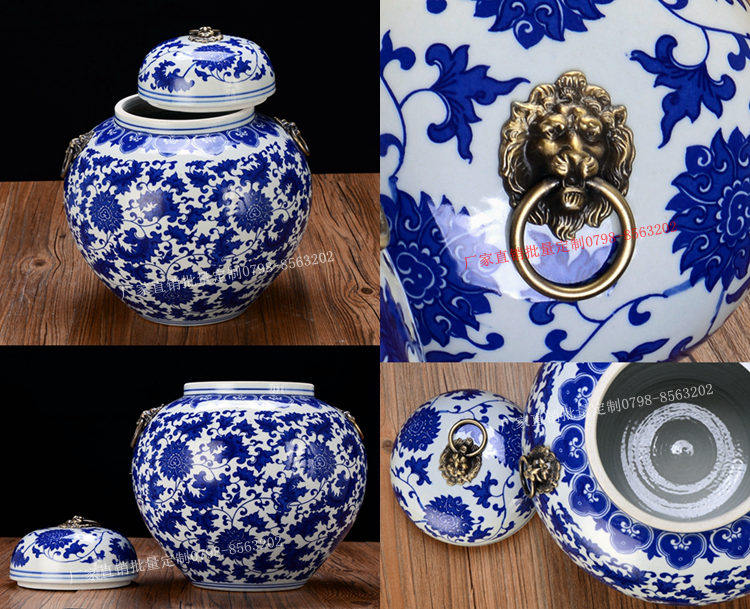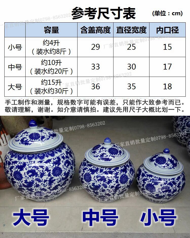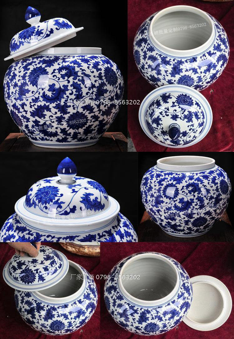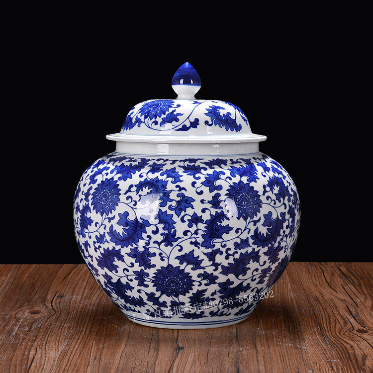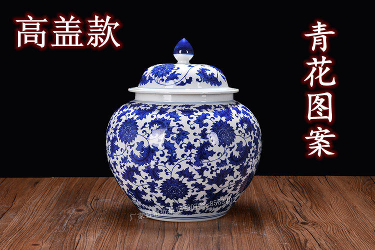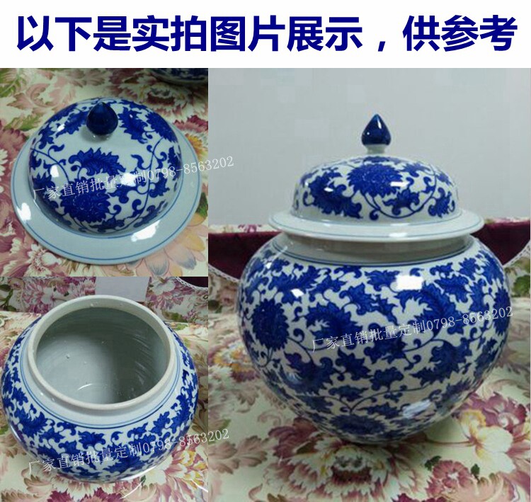 Jingdezhen Ceramic Rice Jar Jar Bare Rice Barrel Cance Teace Pot Pot Retro синий и белый большой размер с крышкой 10 Catties 20 Catties 30