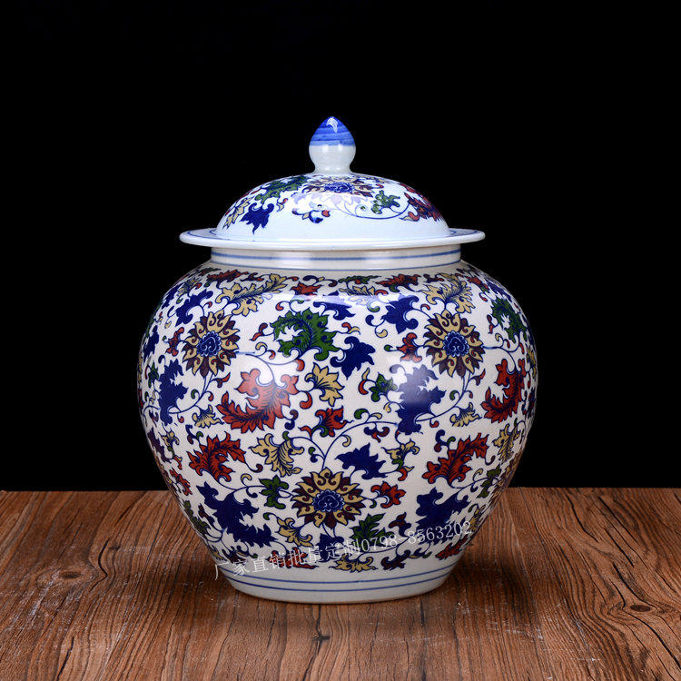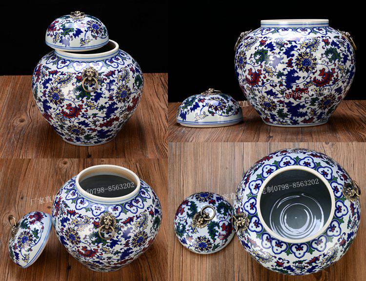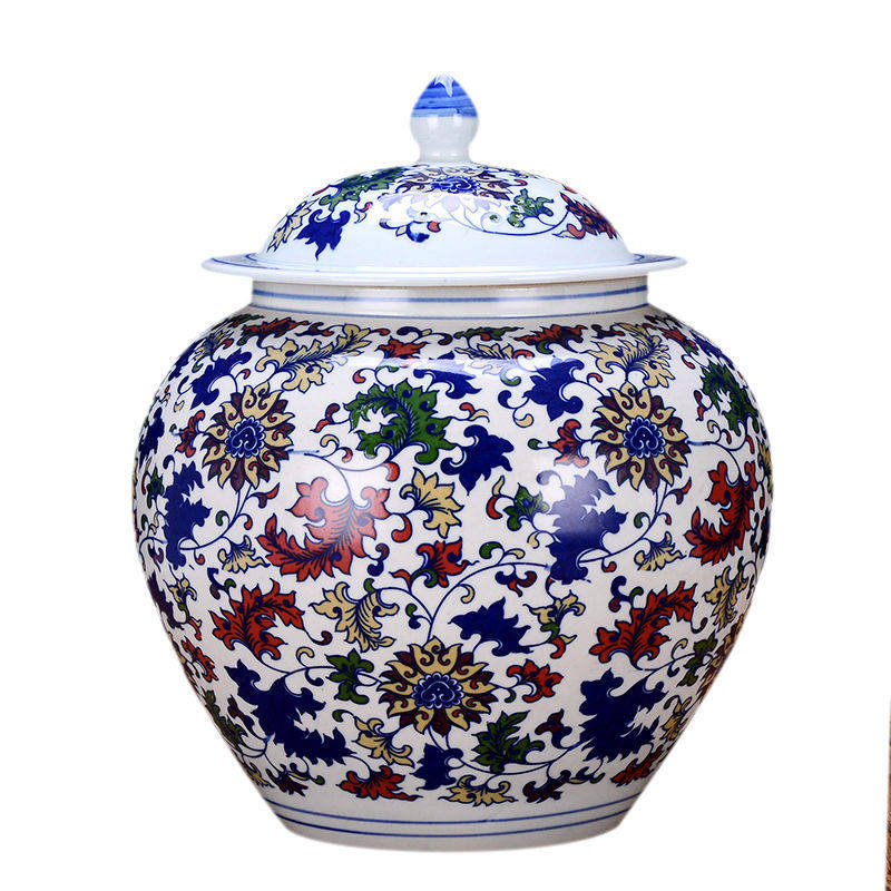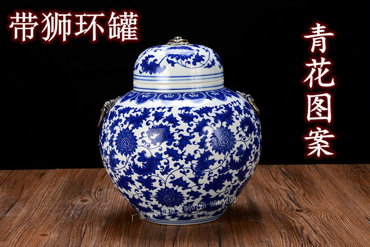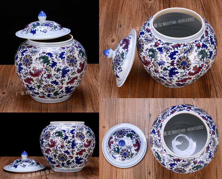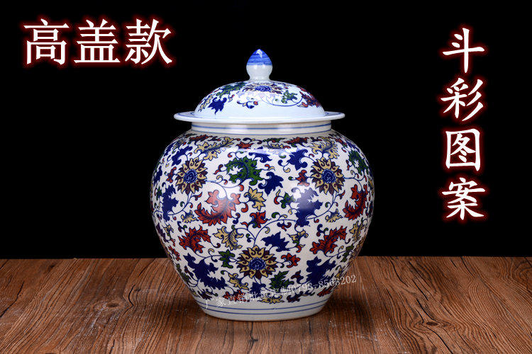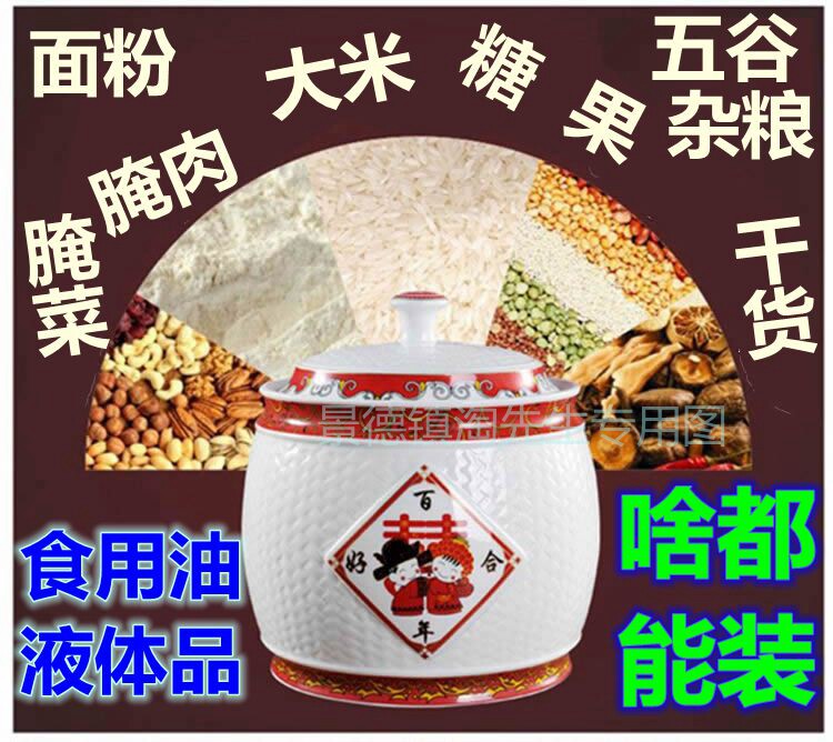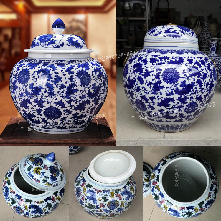 Jingdezhen Ceramic Rice Jar Jar Bare Rice Barrel Cance Teace Pot Pot Retro синий и белый большой размер с крышкой 10 Catties 20 Catties 30