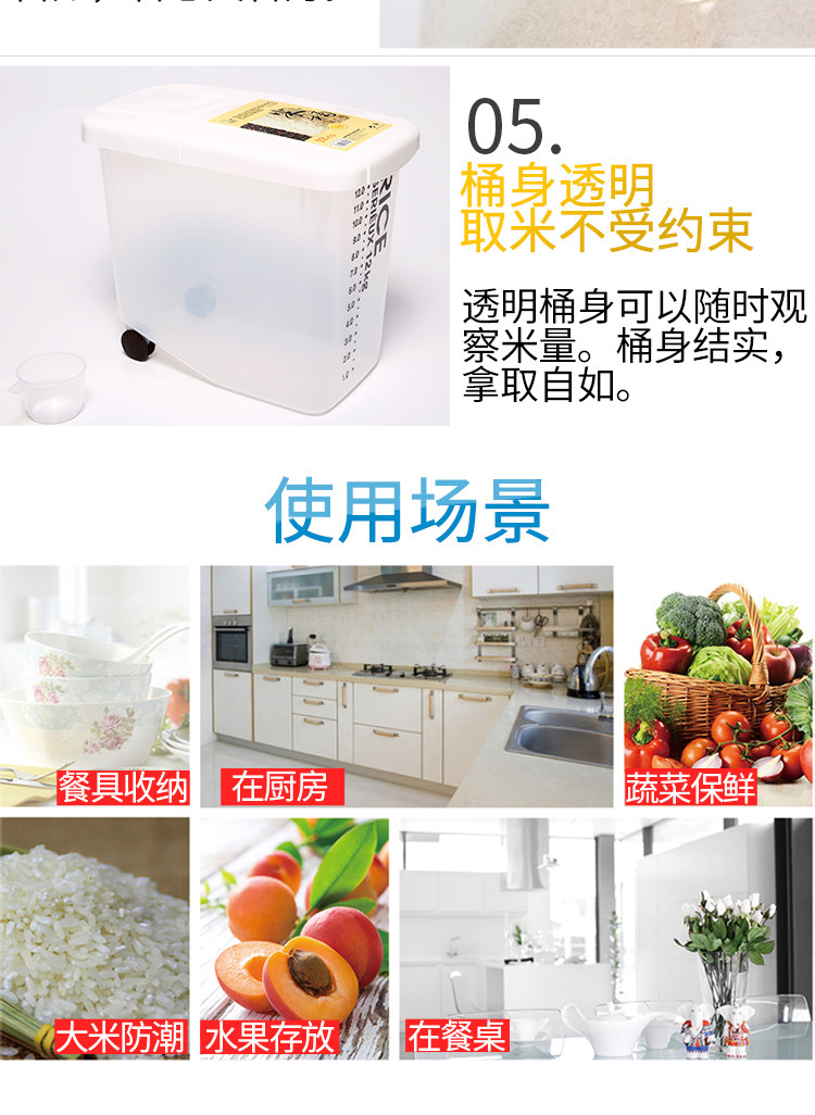 20 фунтов герметизированного рисового бочка с крышкой для хранения рисовой коробки с утолщенным пластиковым рисовым цилиндром влажная анти -инсекционная нагрузка на кухня