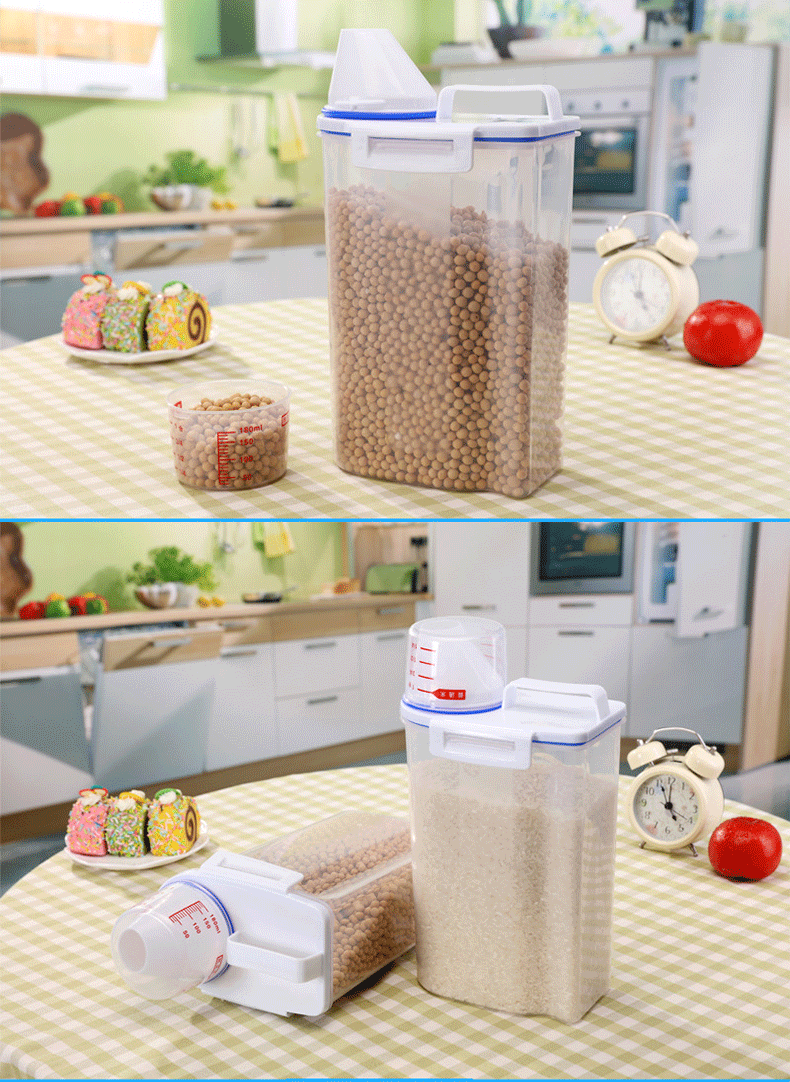 Кухня сгущенная пластика с инсектицидной рисовой ствол рисовая коробка 2 кг влажная влажная -рисовая цилиндрическая мука для хранения рисовой коробки для хранения рисовой коробки