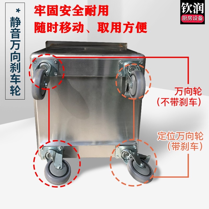 Чрезвычайно густая мука из нержавеющей стали Коммерческая кухня корма для хранения кухни 40 кг50 кот муки с бочкой рисовой бак может перемещаться