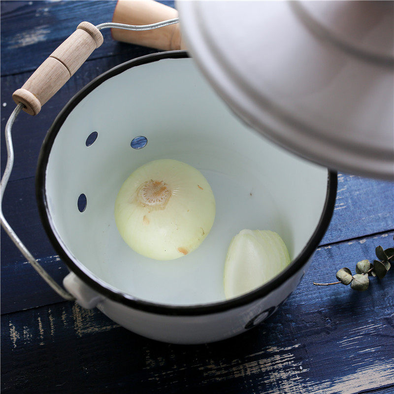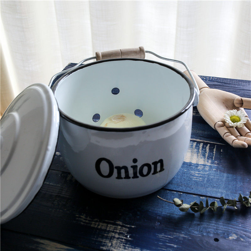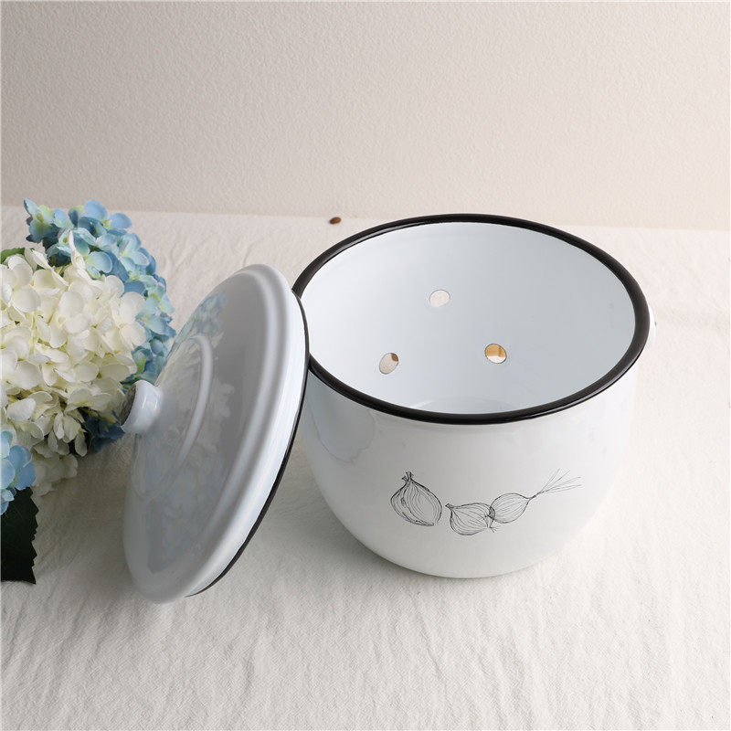 Оттиск эмалевой эмалевой луковой луковой лук полой эмалевой танк домашний кухонный поставки дышащий резервуар для хранения