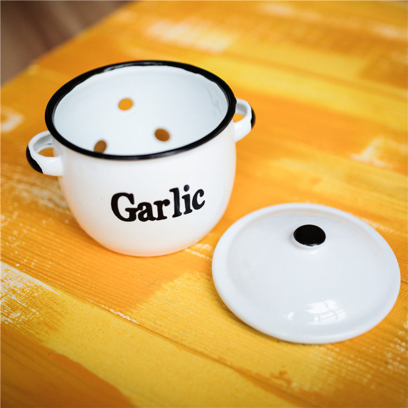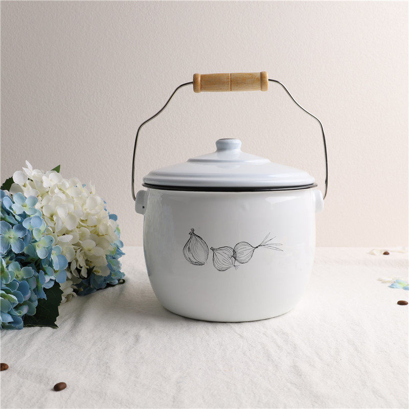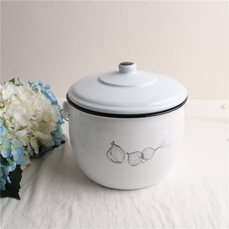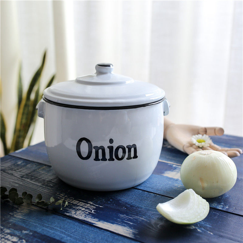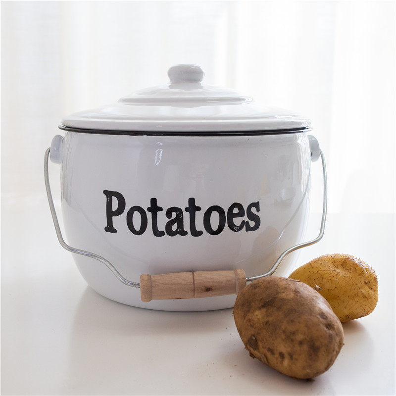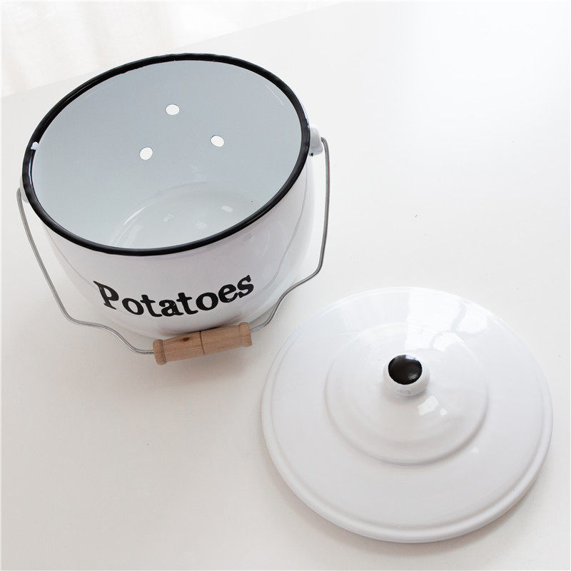 Оттиск эмалевой эмалевой эмали картофель лук и чесночная пустота эмалевая танк домашняя кухня для хранения хранения
