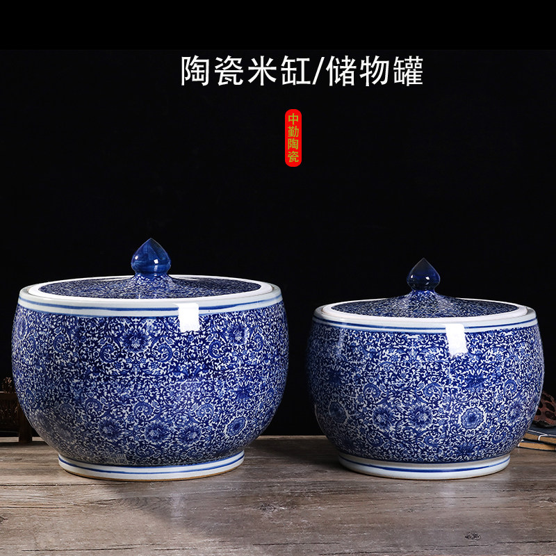 Керамический рисовый цилиндр Джингдезхэнь с бочкой рисовой ствол 10/20/50 Catties с крышкой уплотнением насекомых -цилиндр -цилиндр маринованный мясо емко