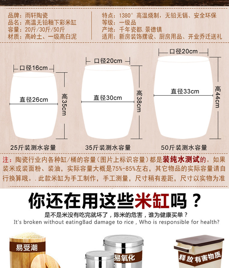 Церамический рисовый танк jingdezhen home 50 Catties of Rice Barrel Tack Tack 30 Catties из рисовой коробки