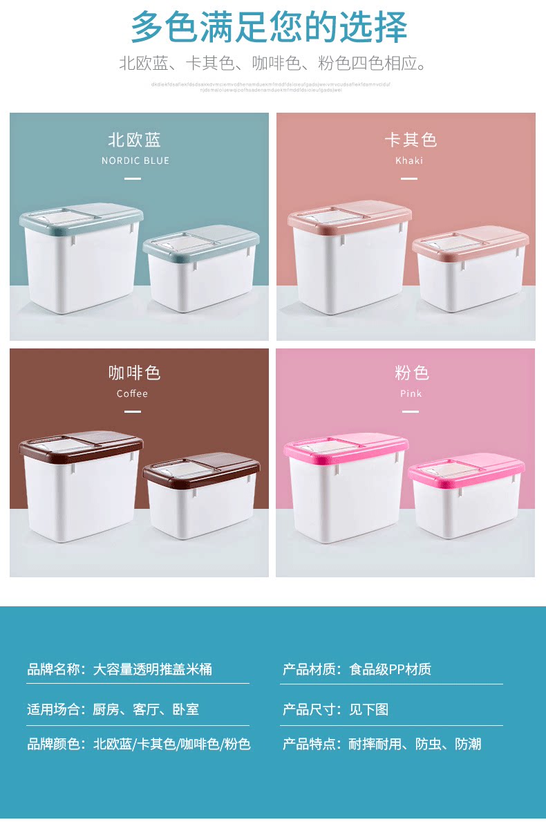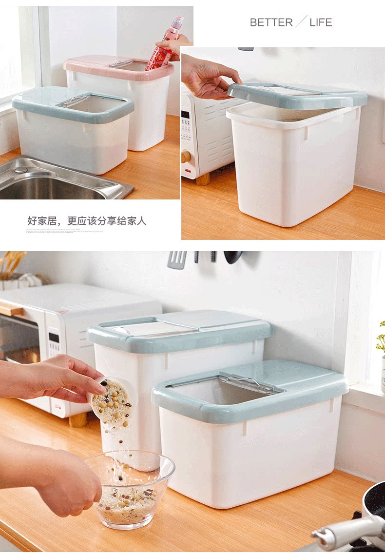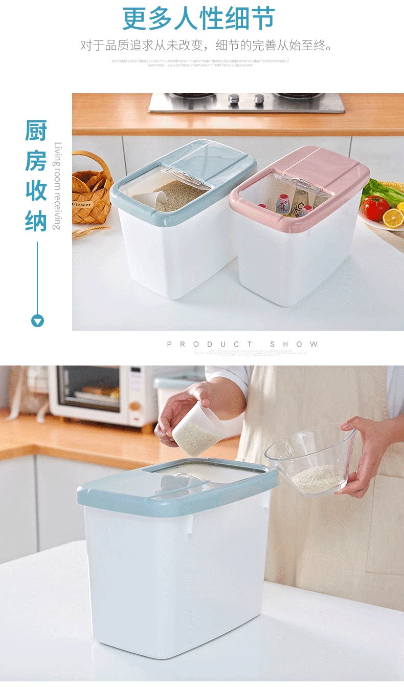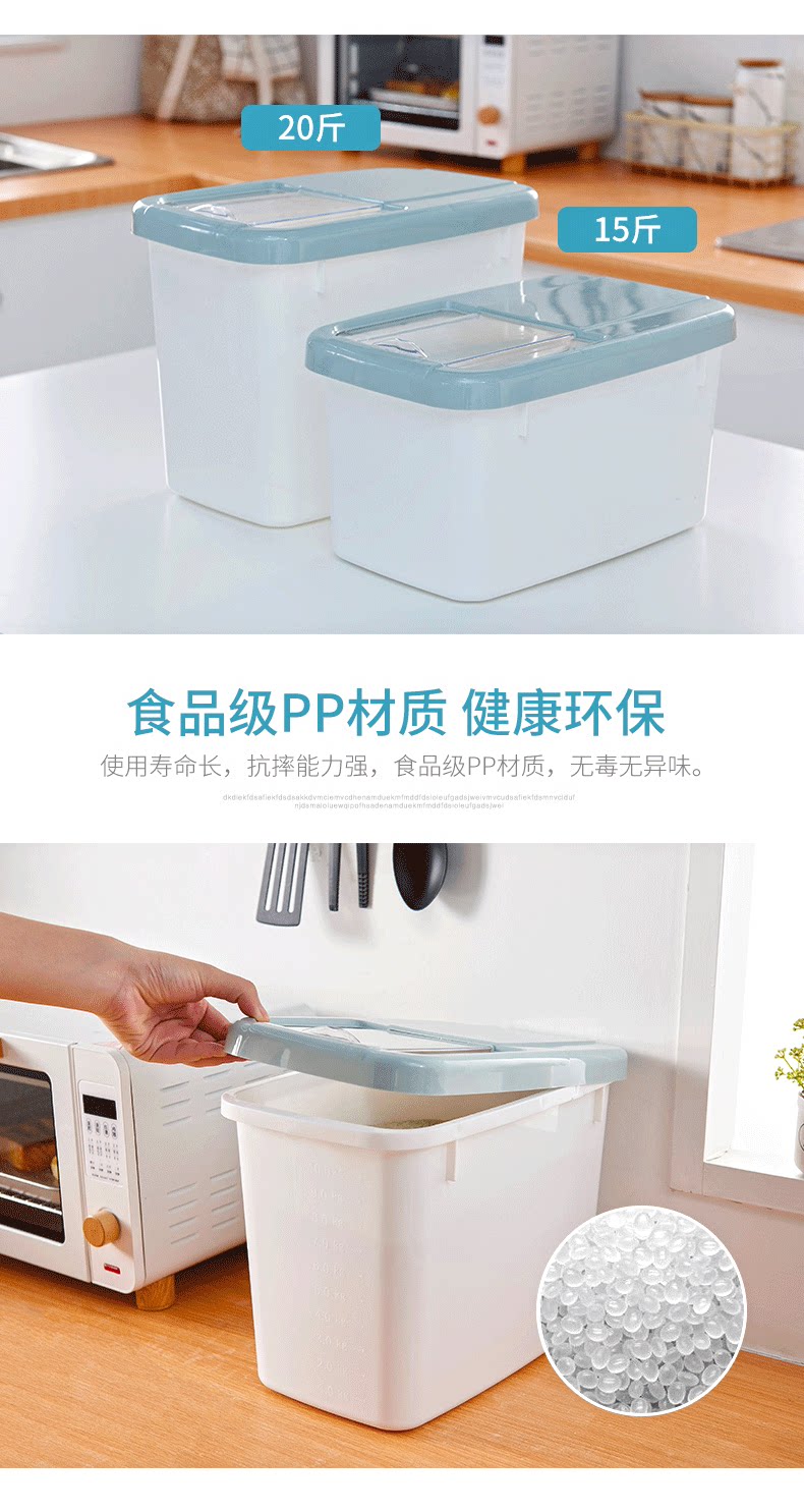 Пластиковая домашняя ствола риса 20 кот из нагруженных рисовых ящиков, влажных насекомых 15 фунтов, небольшая ящик для хранения муки Большой рисовый цилиндр