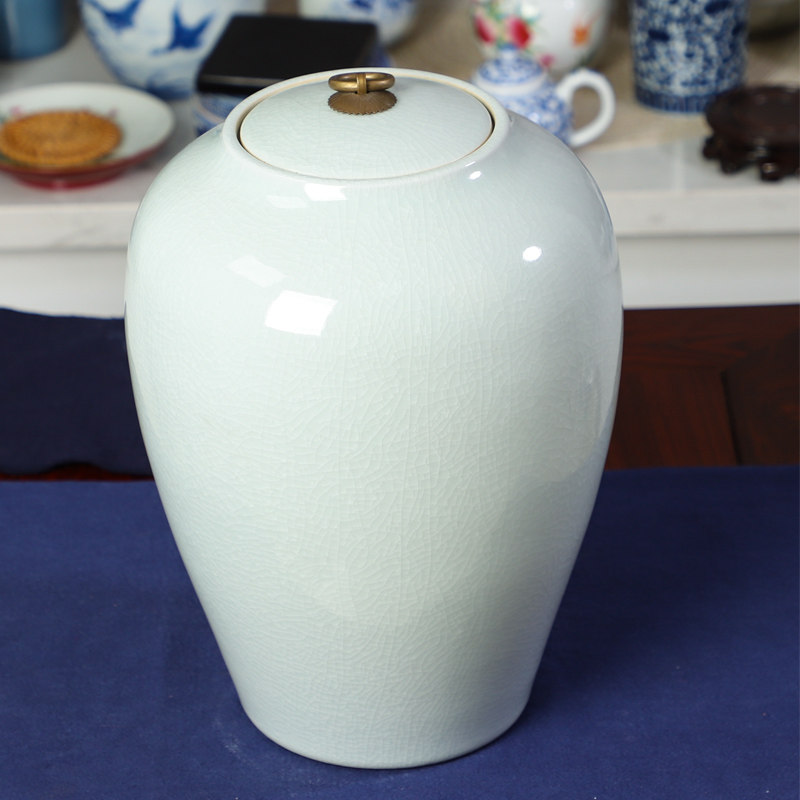 Церамический рисовый цилиндр Jingdezhen Домохозяйство влагая влага -Проницаемое анти -инсекционное -рисовое ведро гостиная кухонная орнамент чайный танк маслокайский бак рис коробка