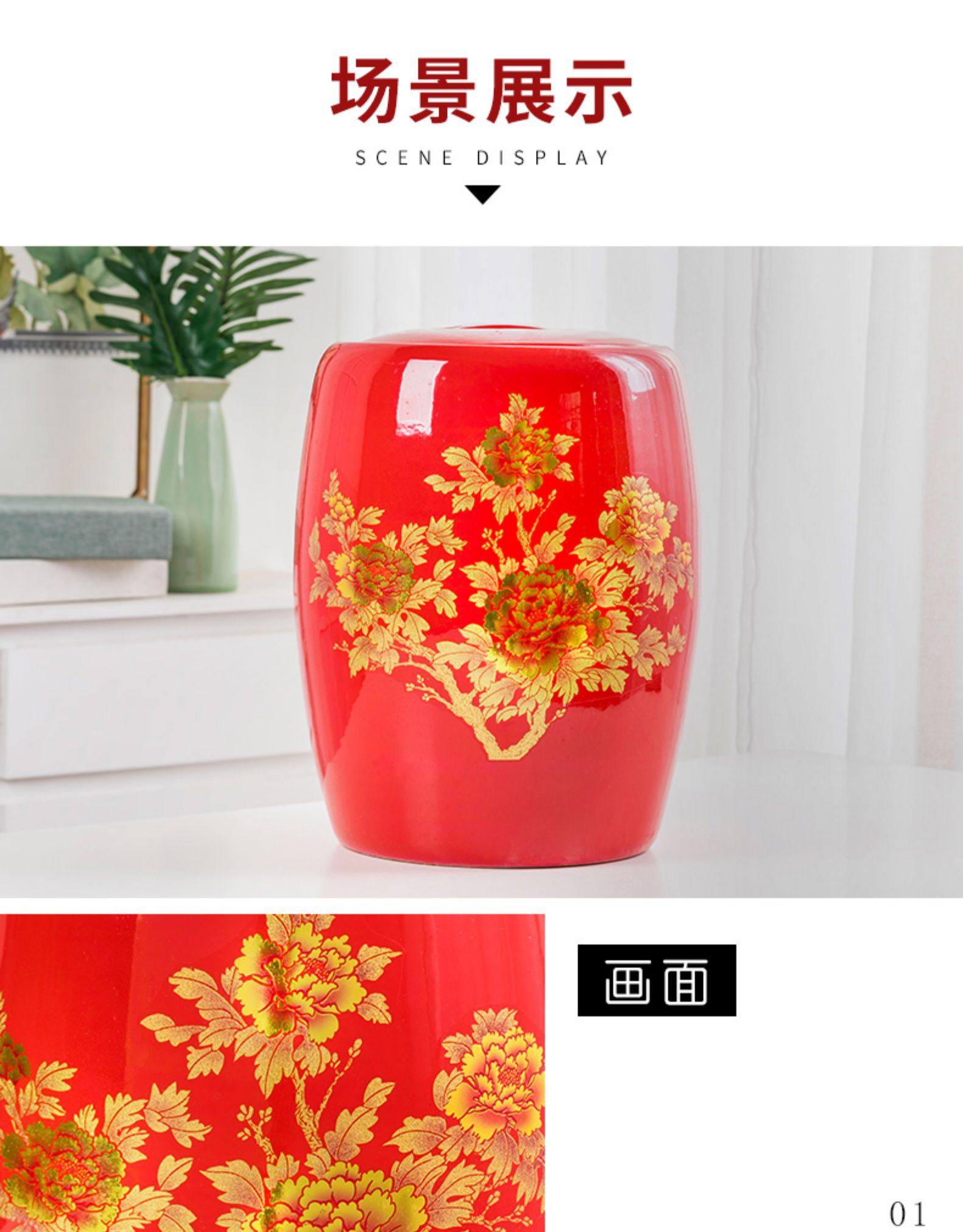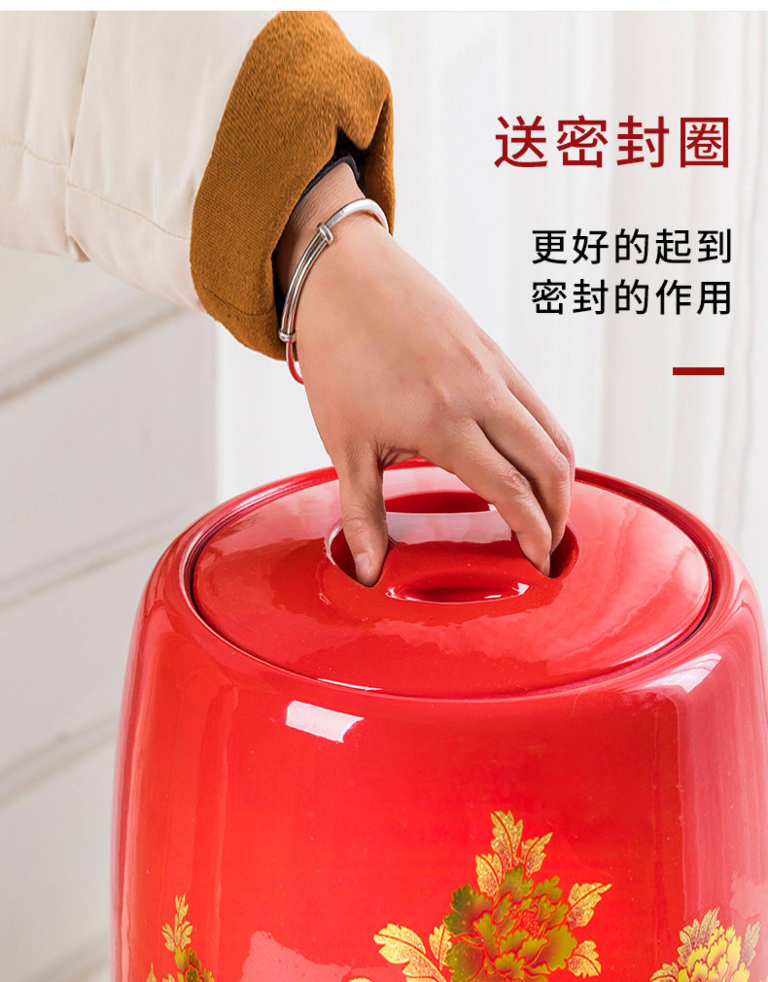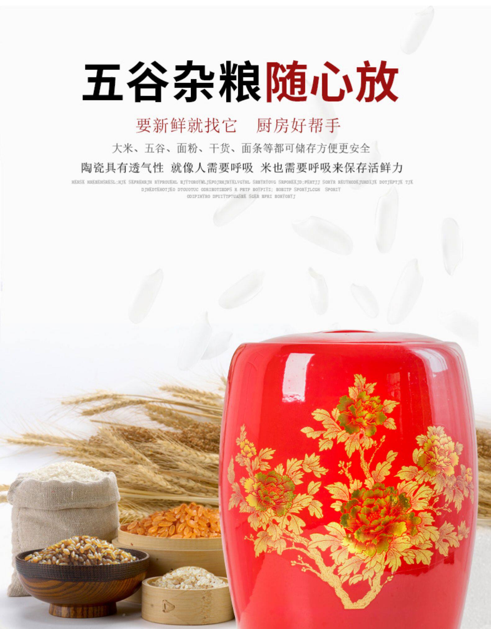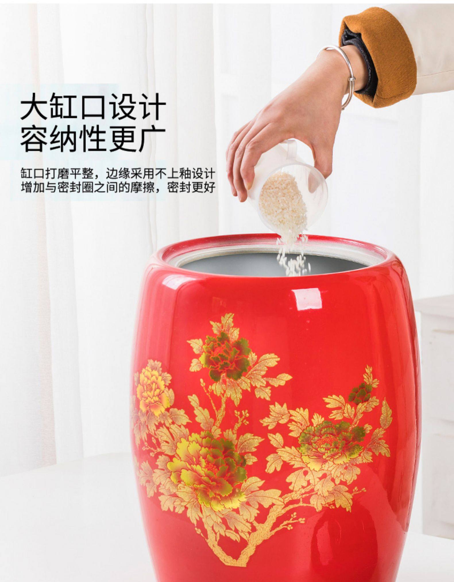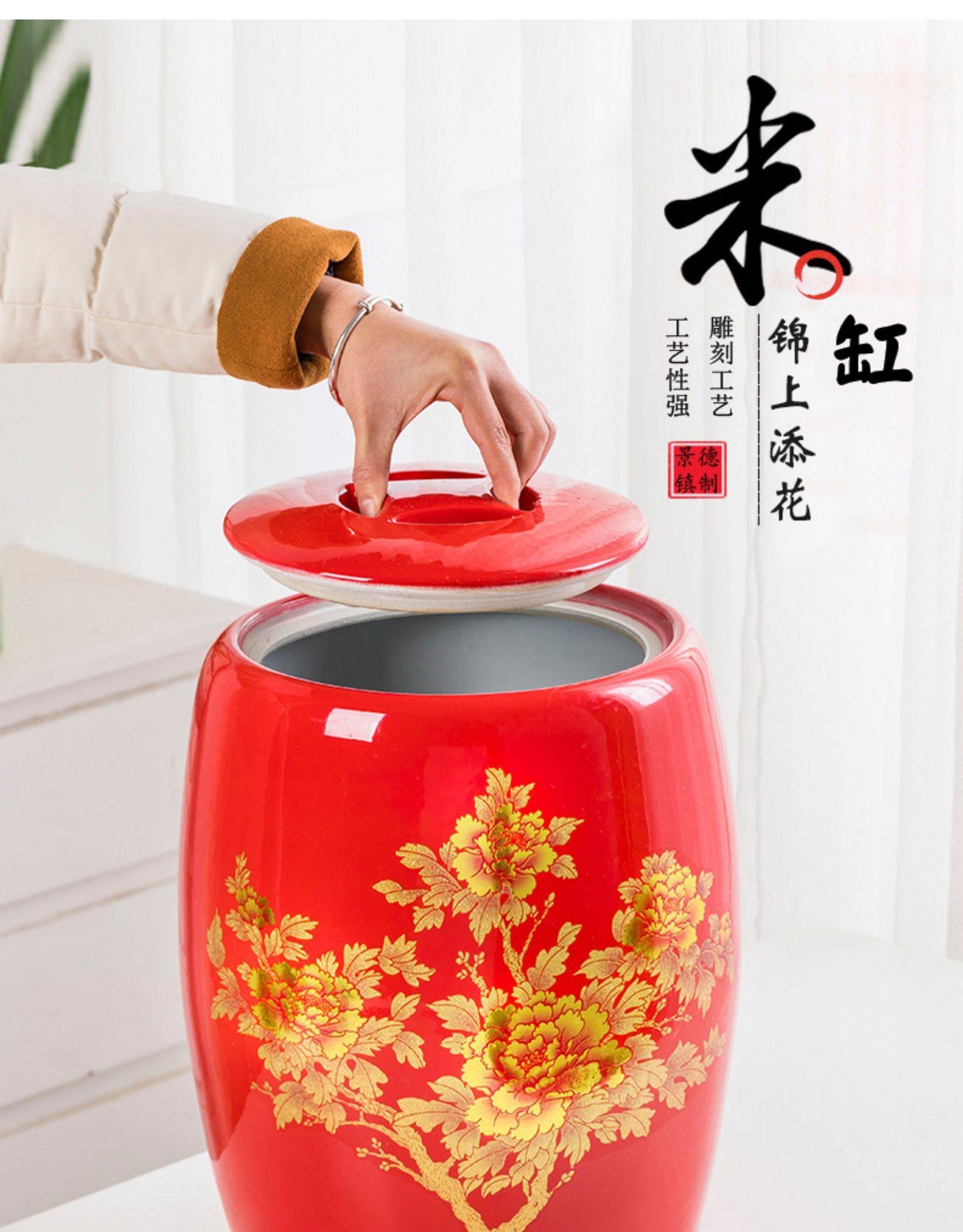 Церамический рисовый цилиндр Jingdezhen Home с крышкой с рисовым рисовым рисом.