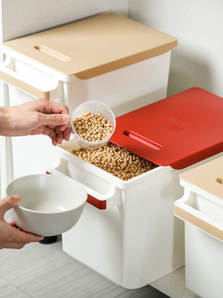 Q с запечатыванием колеса насекомые -рисовая ковша пластиковая хранение рисовая коробка 20 фунтов домохозяйства с большим влажением -рисовый цилиндр кухня толстая рисовая коробка