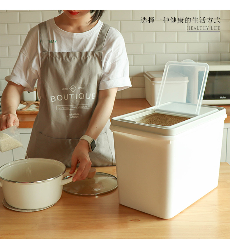 Рисовая ствола для хранения рисовой коробки 10 кг дома 15 кг пластиковой рисовой цилиндр муки ковш