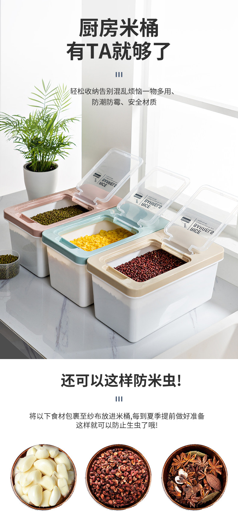 Сделайте рисовую ствол 20 фунтов домашнего насекомых -Влажная влажность -Напряженная герметичная рисовая коробка рисовая лапша