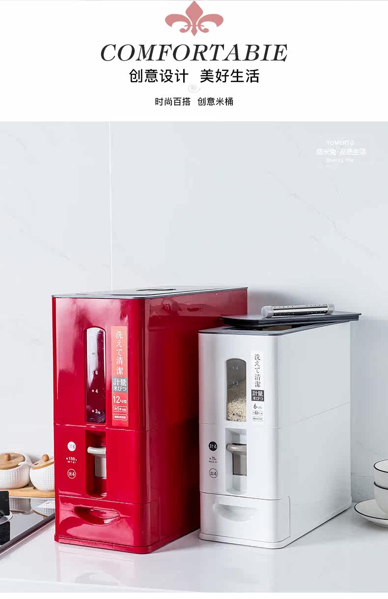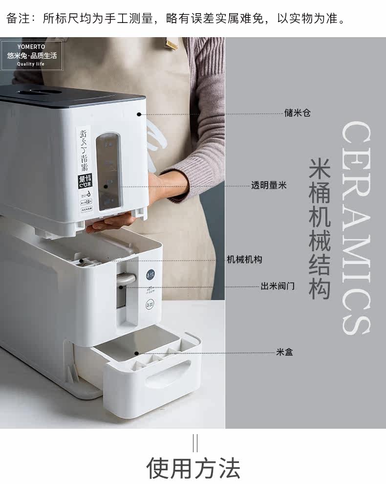 Японское измерительное метр рисовый ковш, влага -Проницаемый анти -инресектный и домашний стильный ящик для хранения рисовой коробки.