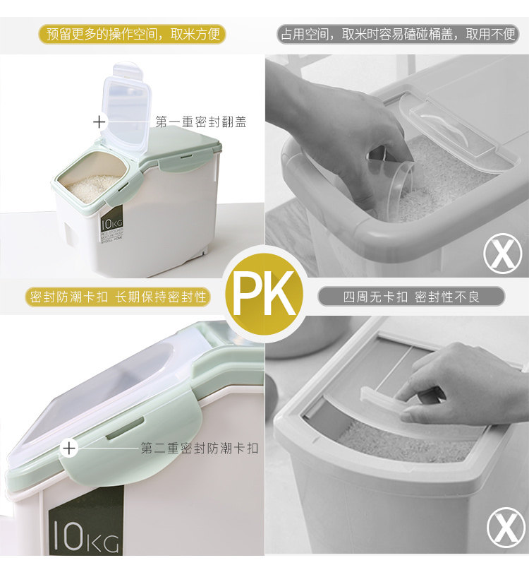 Домохозяйственная ствола 10 кот 20 кот, 20 кг рисовой коробки, 50 кот рисовых цилиндров, насекомые, влажные -надежные ящики для хранения хранения риса с уплотнением риса.