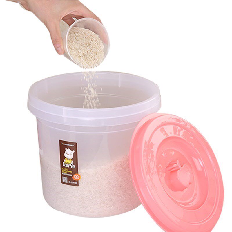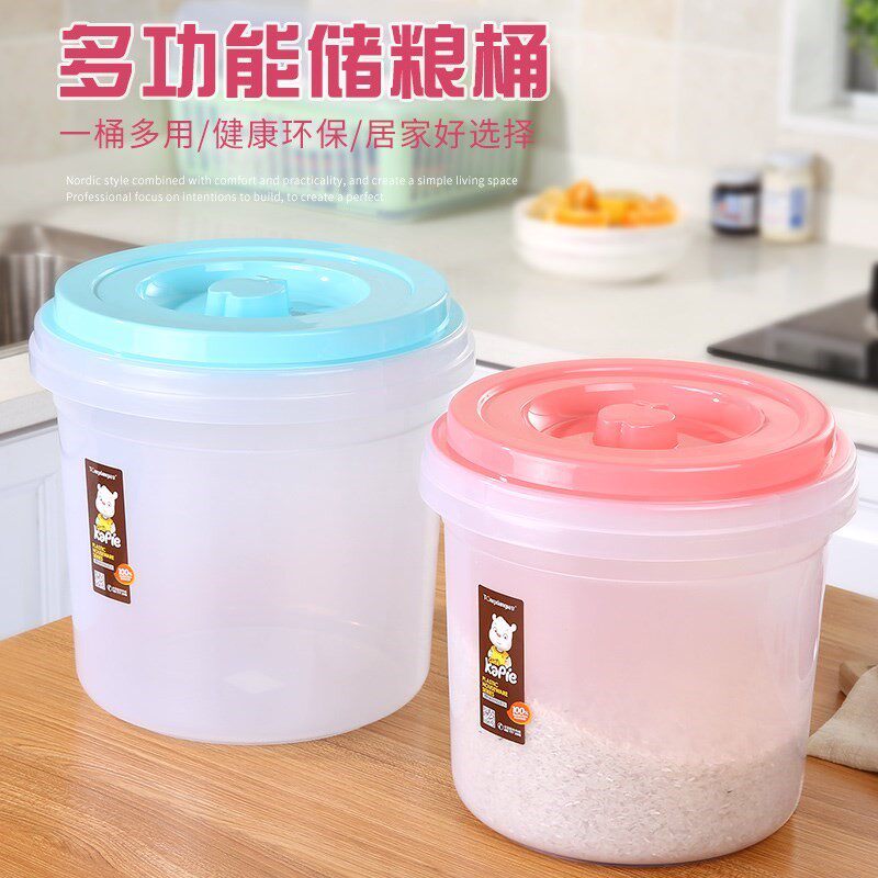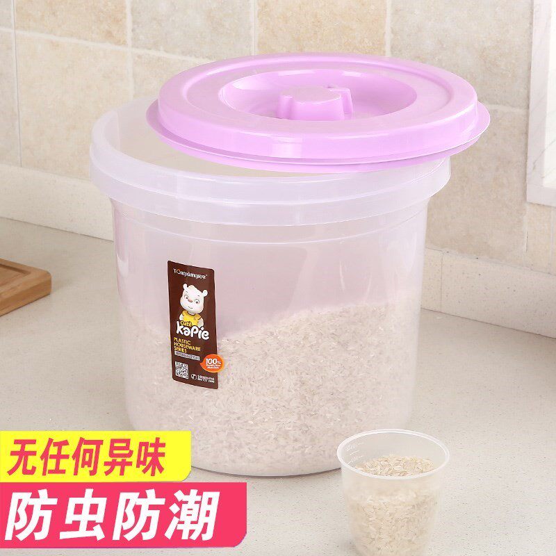 Пластиковая коробка для хранения ствола влага -надежная мука для хранения и насекомое -подверженное рисовому ведру домохозяйственную большую круглую прозрачную установку.