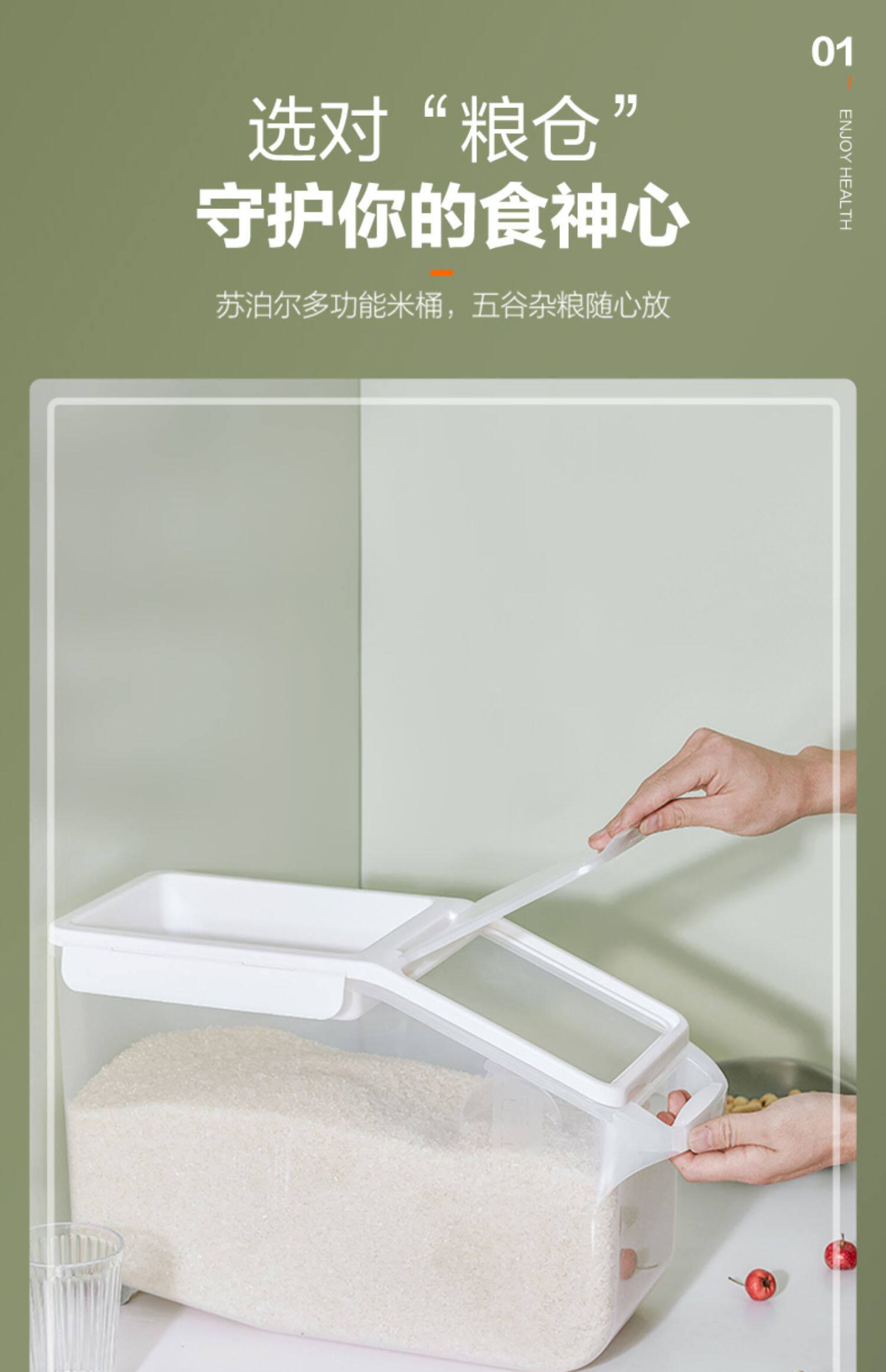 Supor Supor Searing Rice Barrel -Связанная с рисовой мукой коробку для хранения домашнего хранения влажность -противодействие рисовому цилиндру с рисовым цилиндром рис