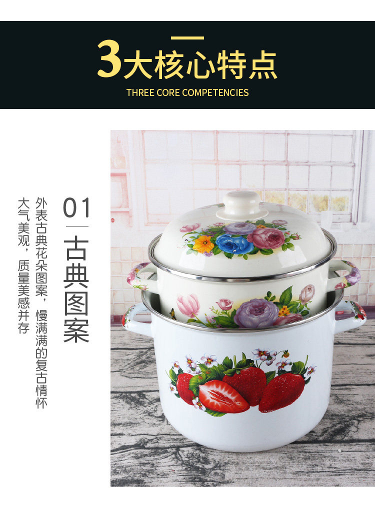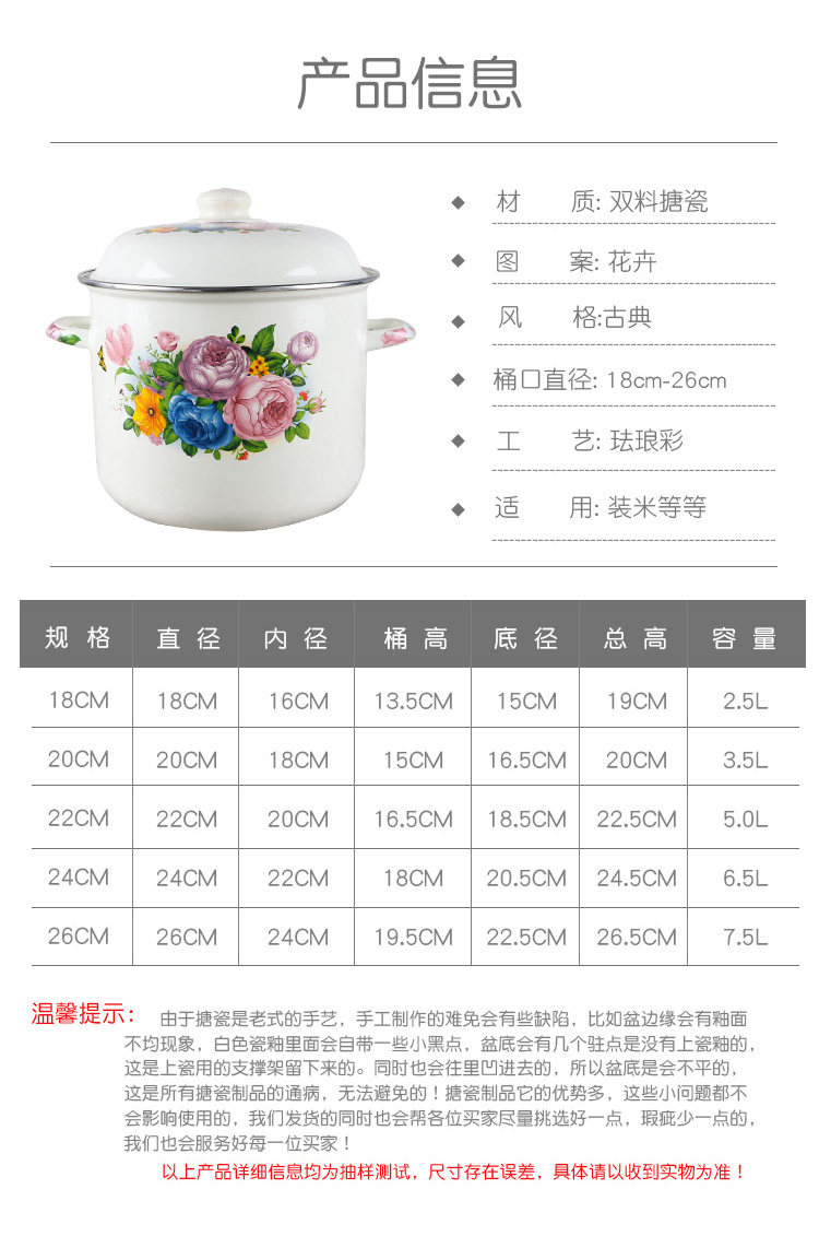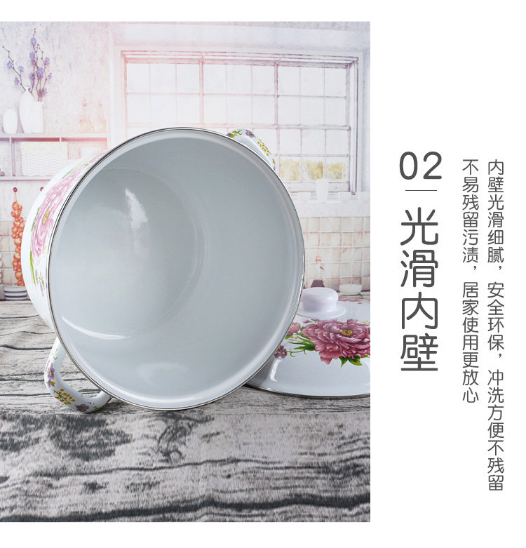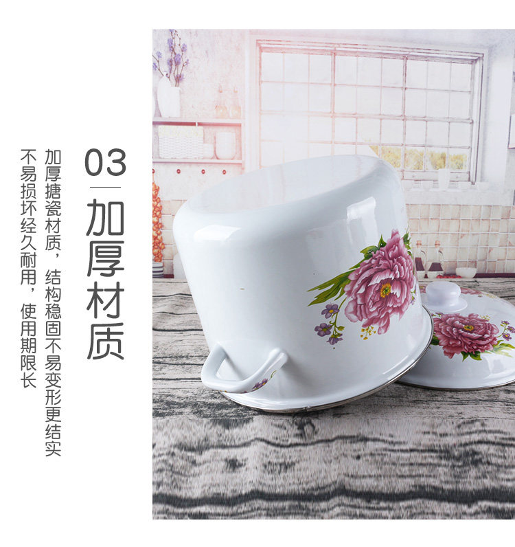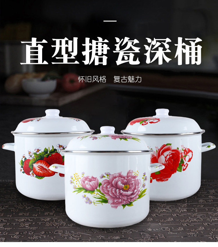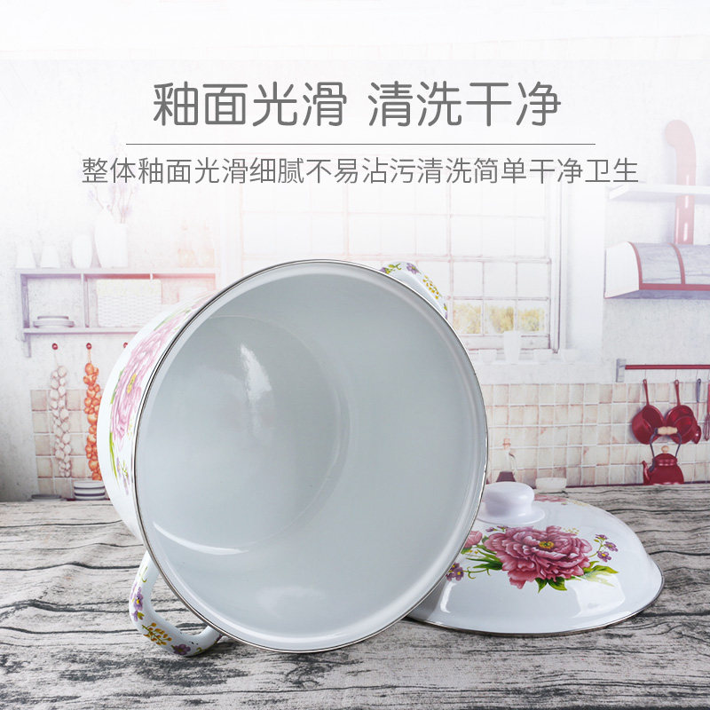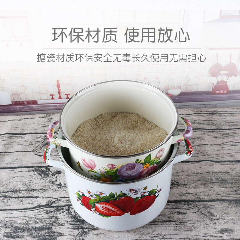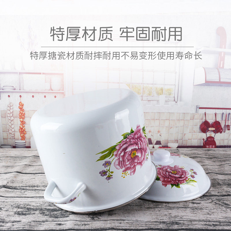 Эмалированное ведро для риса с двойными ушами и крышкой, эмалированное ведро, большое ведро для хранения на открытом огне, утолщенная кухонная посуда для горячего тушения