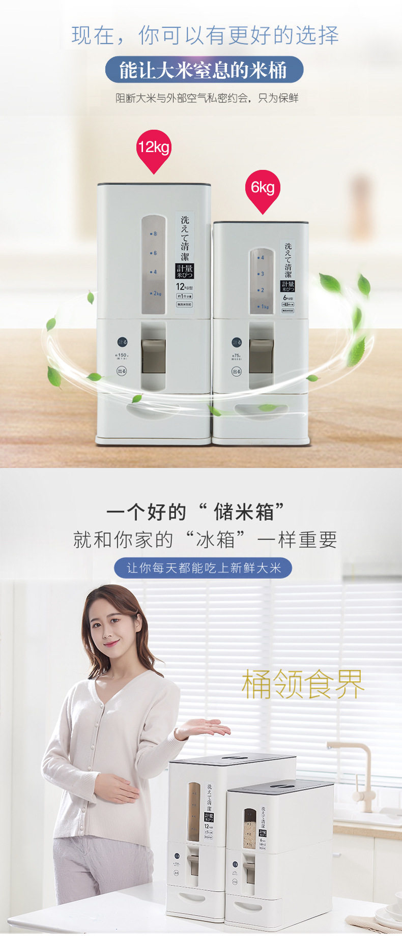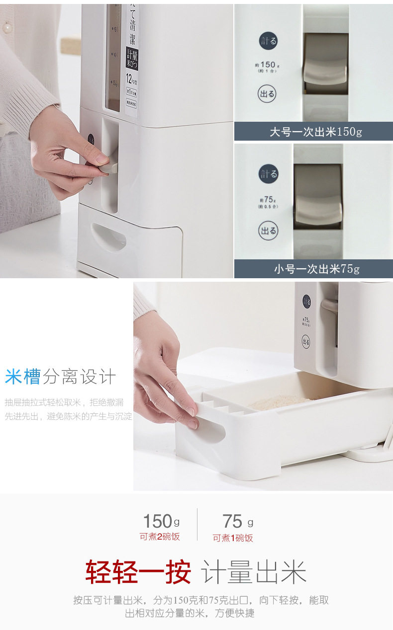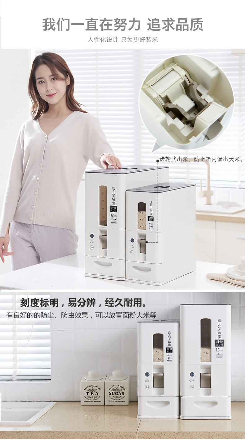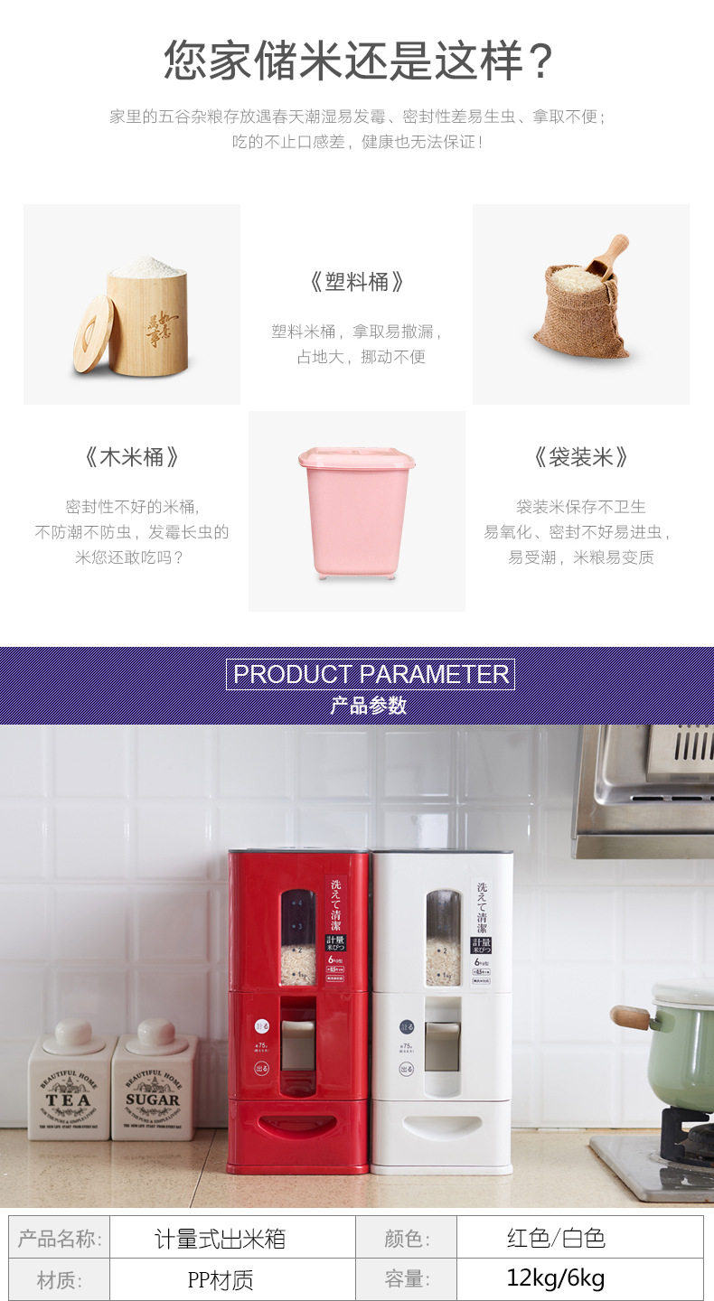 Японская стиль домашнего измерения измерения риса рис ковш накачки шириной -надежный прилив -защитный бак для хранения кухонного хранения