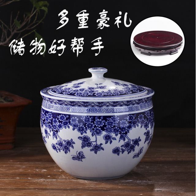 Специальное предложение Jingdezhen Ceramic Rice Tank Rice Buckte Bule и белая банка для хранения маринованное овощное кинотеатр водяной цилиндр 10 кот 10 фунтов с крышкой