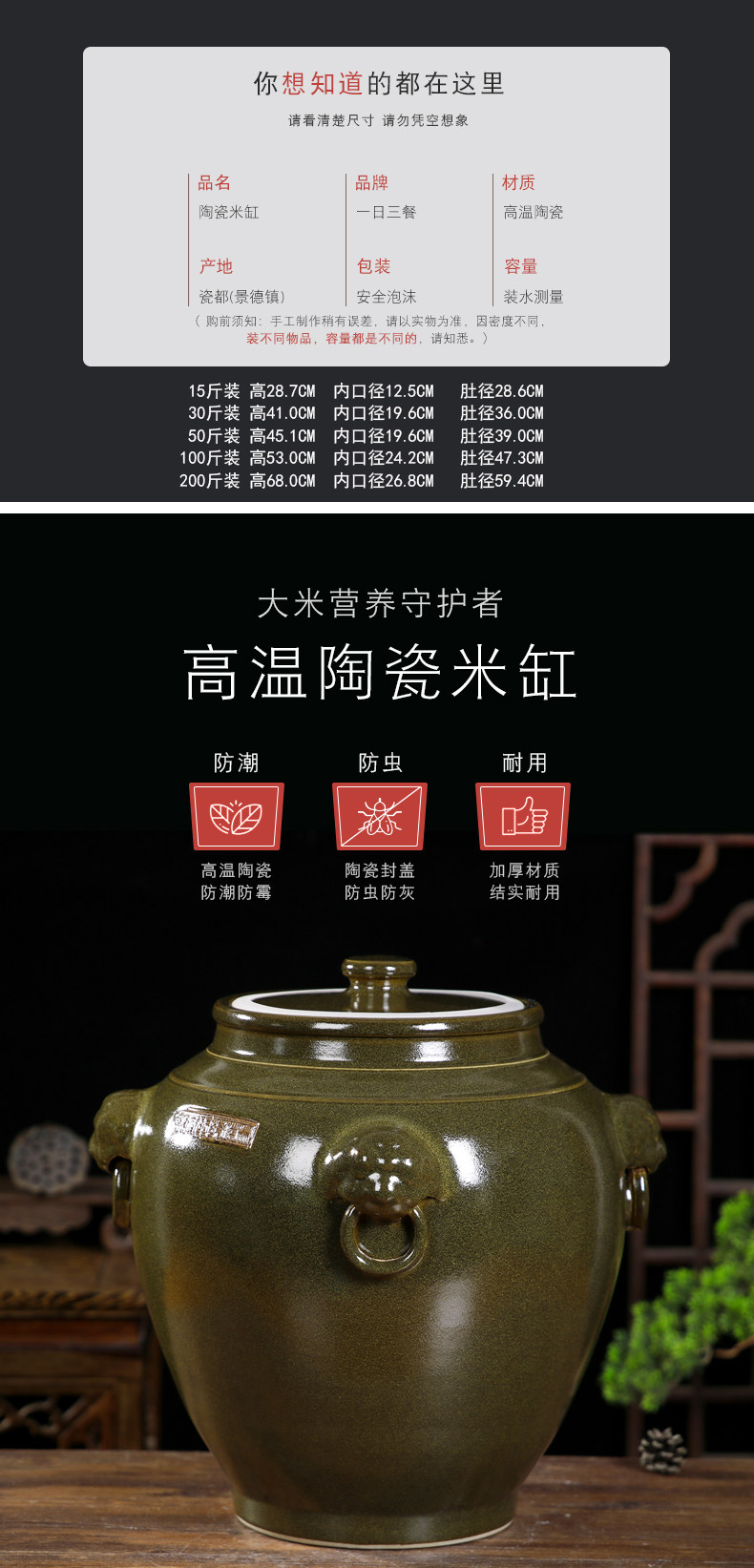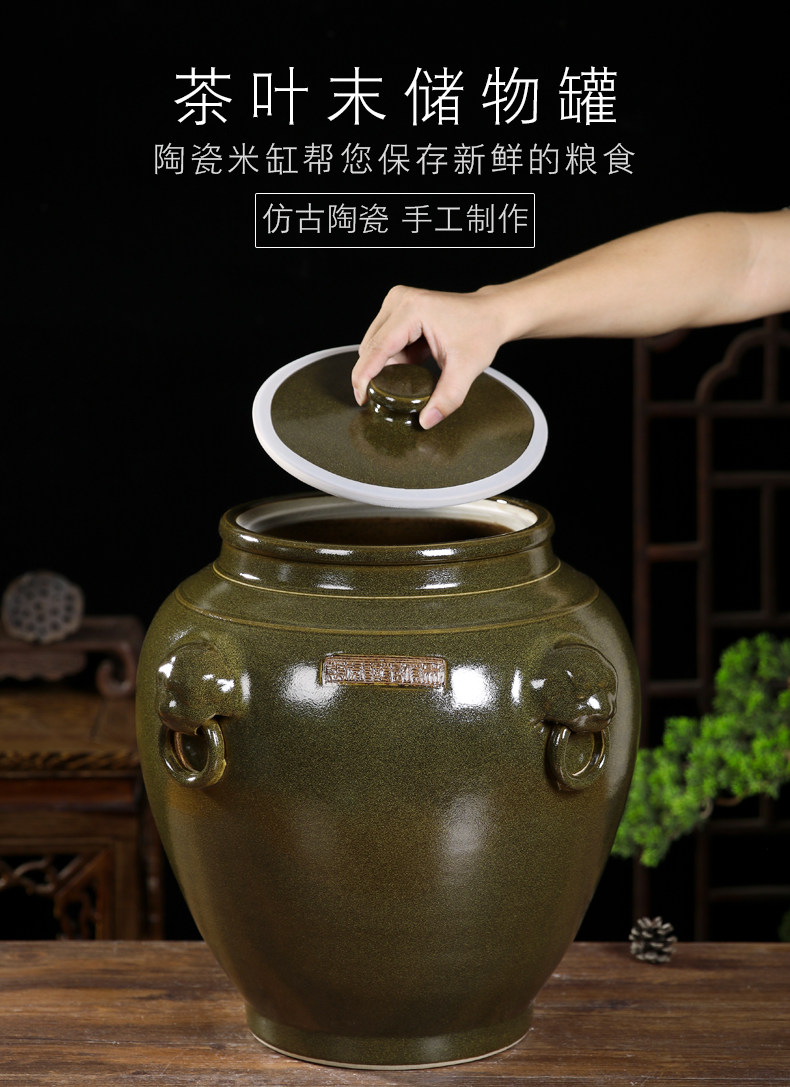 Церамический рисовый танк jingdezhen с домом с домом из 30 кот 50 кот, 100 кот, 100 фунтов чайного листа Старый