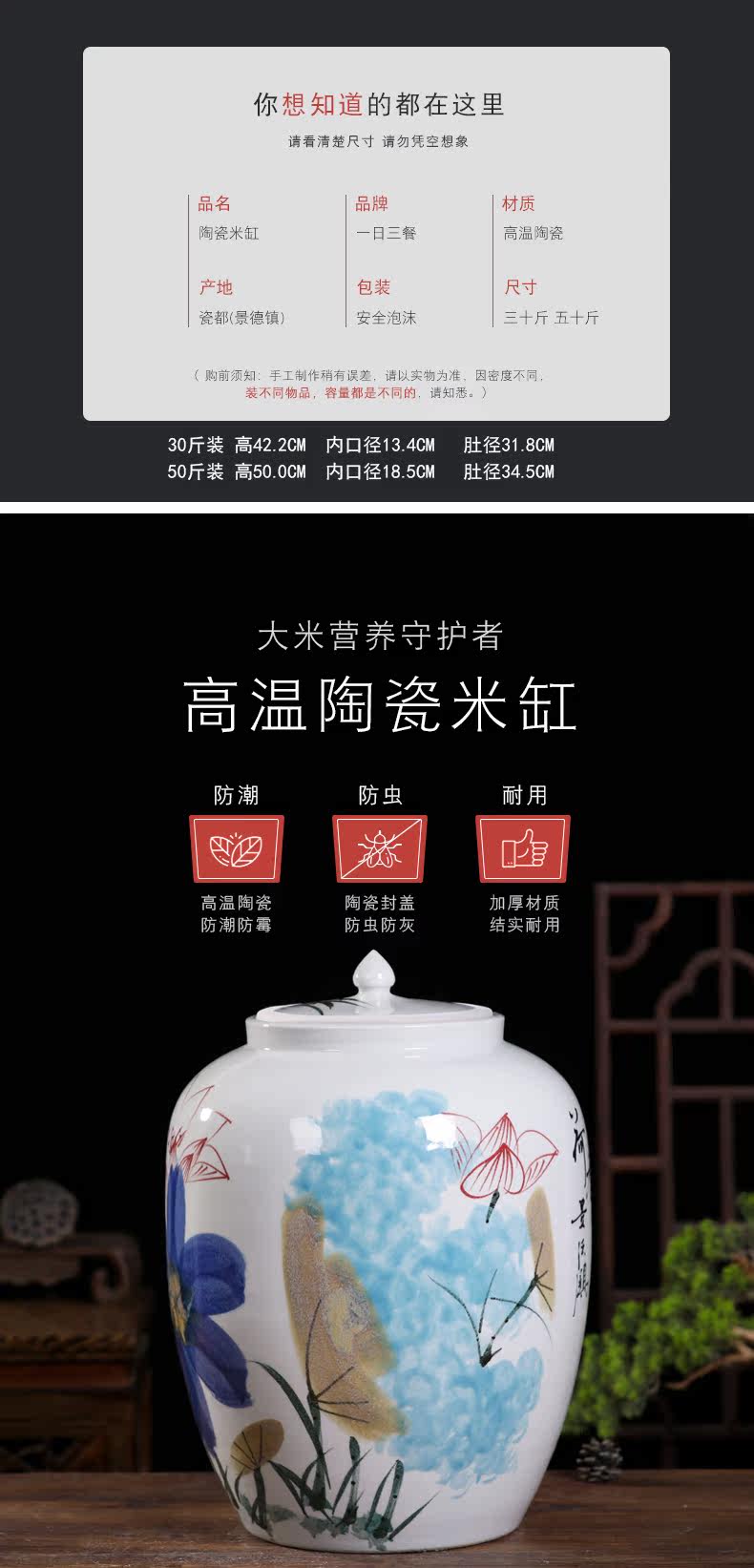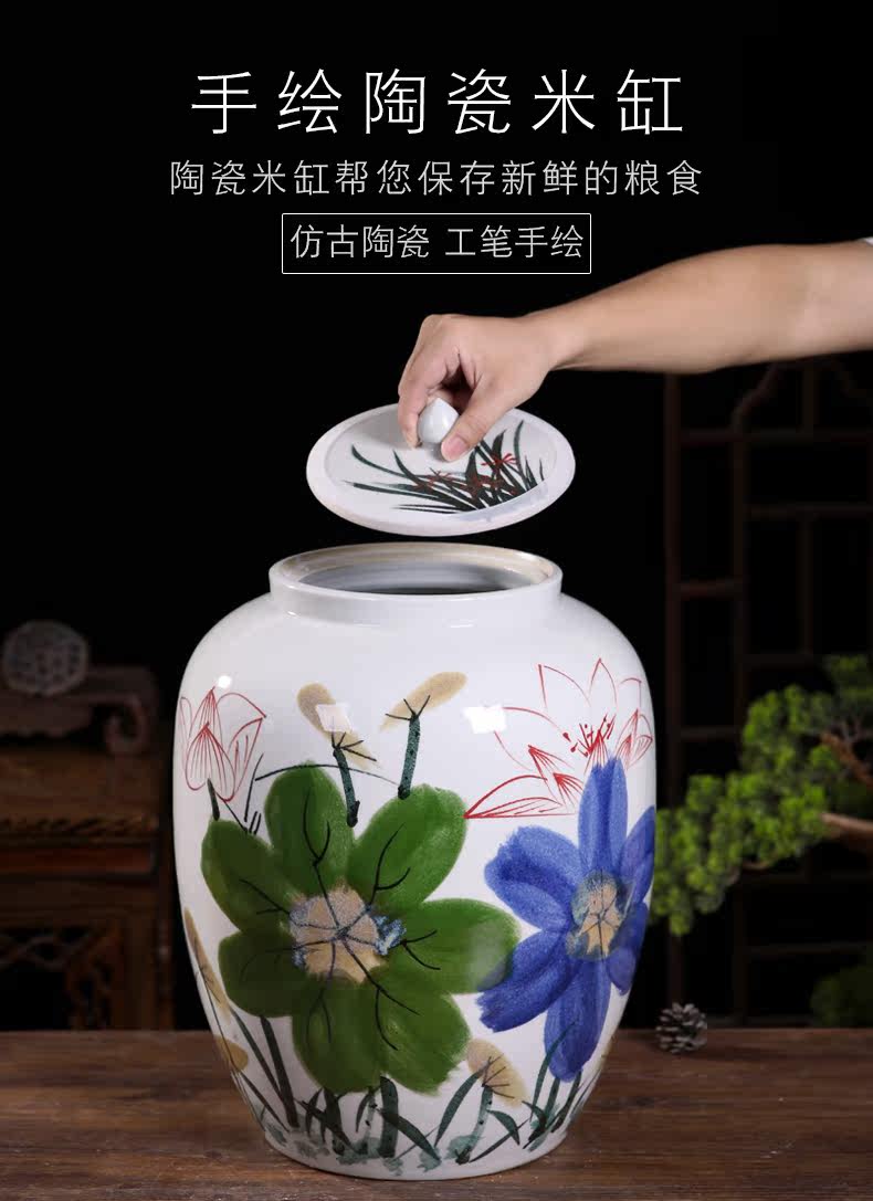 Керамическая ёмкость для риса, контейнер для хранения, ручная роспись, защита от насекомых и влаги
