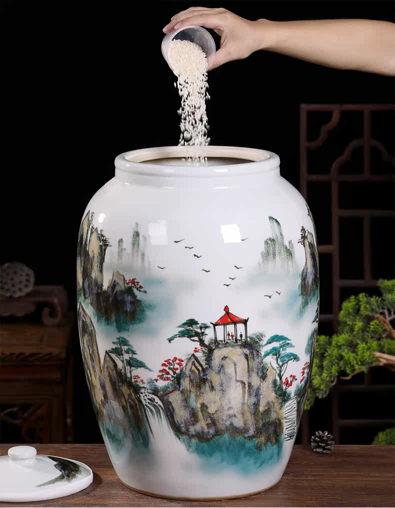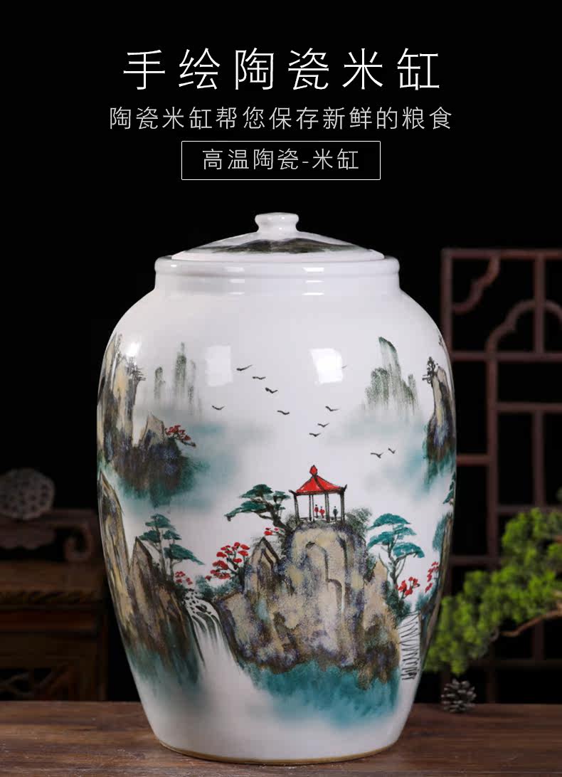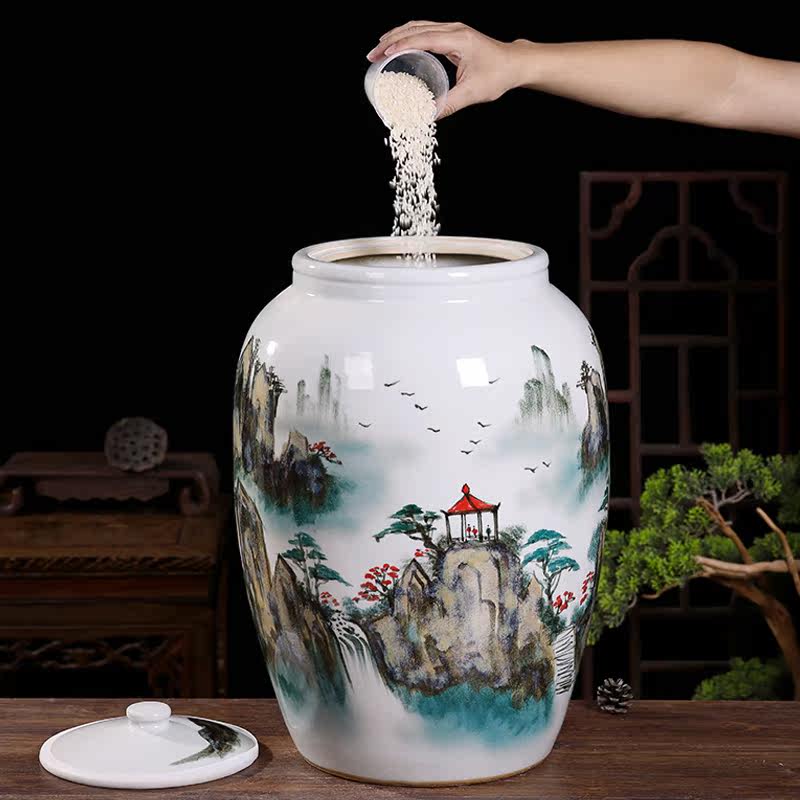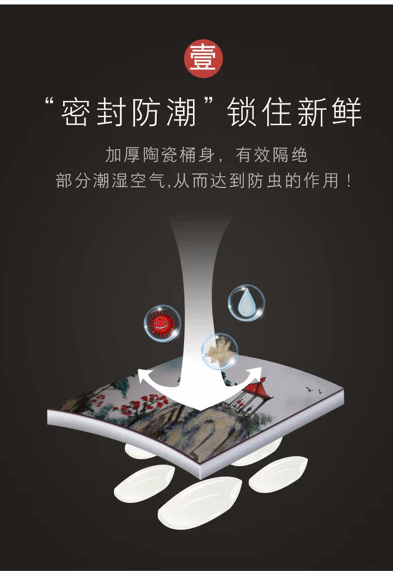 Церамический рисовый резервуар для джингджэна с емкостью 25 кот 50 кот, лапша ведро кухонная влажность -Проницаемый анти -инсекулярный резервуар для хранения